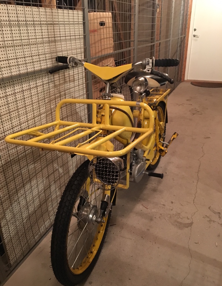 Jaha då vart lite delar lackade. Vid påsk så lackar man ju självklart GULT!? Nu får vi hoppas att färgkoden stämmer någorlunda med resterande delar som har orginal lacken. Annars ska Robban o sture-tture få sig en omgång MEN de märker vi imorn! Nu ska jag bara försöka få bort 1 lager hammarlack från pakethållaren och fäste. Har läst om lite olika metoder, har någon något tips? Vet att det ev inte går o få bort.. Men de går relativt enkelt o skrapa med kniv så bör kunna lösas upp någorlunda. Glad påsk på er.