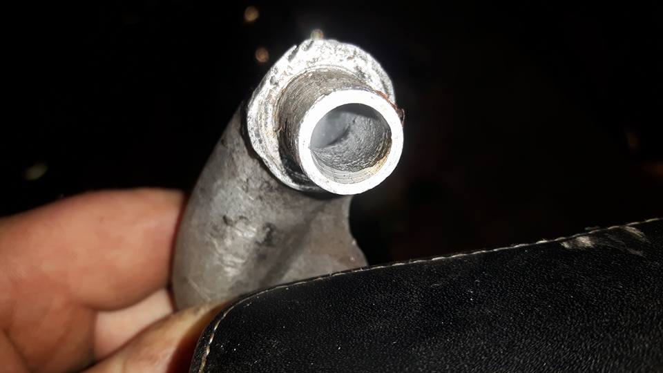 Gjorde rent krök men den var inte tillräckligt tät för att vara orsaken så gick vidare till kontrollera ljuddämparen. Å se där hittade jag en av bovarna till fenomen. Ja varför vet i kattsingen men ljuddämparen var pluggad med en fastsvetsad m10 bult i mynningen alla gaser vart tvingade ta sig ut genom ett 5mm hål. Ja Jösses Amalia.. Orkade inte krångla med att få loss bulten i kväll men borrade ytterligare 4a 5mm hål. Återmonterade och provstartar japp nu varvade den bättre bra mycket bättre men inte bra. Dock nu själv trött så vart natten för mig.