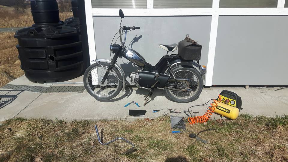 Finrenovering med riktig lack till vintern blir det i alla fall för trevlig moped för att inte göra det lilla jobbet också..