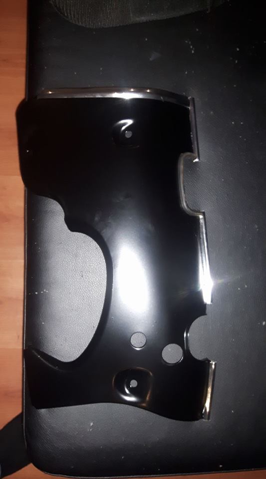 Så tänkte en kromlist som förlängning av den rostfria skärmkantens linje och lite nerkortning av kåpan bör ge en mer linjerätt utseende..