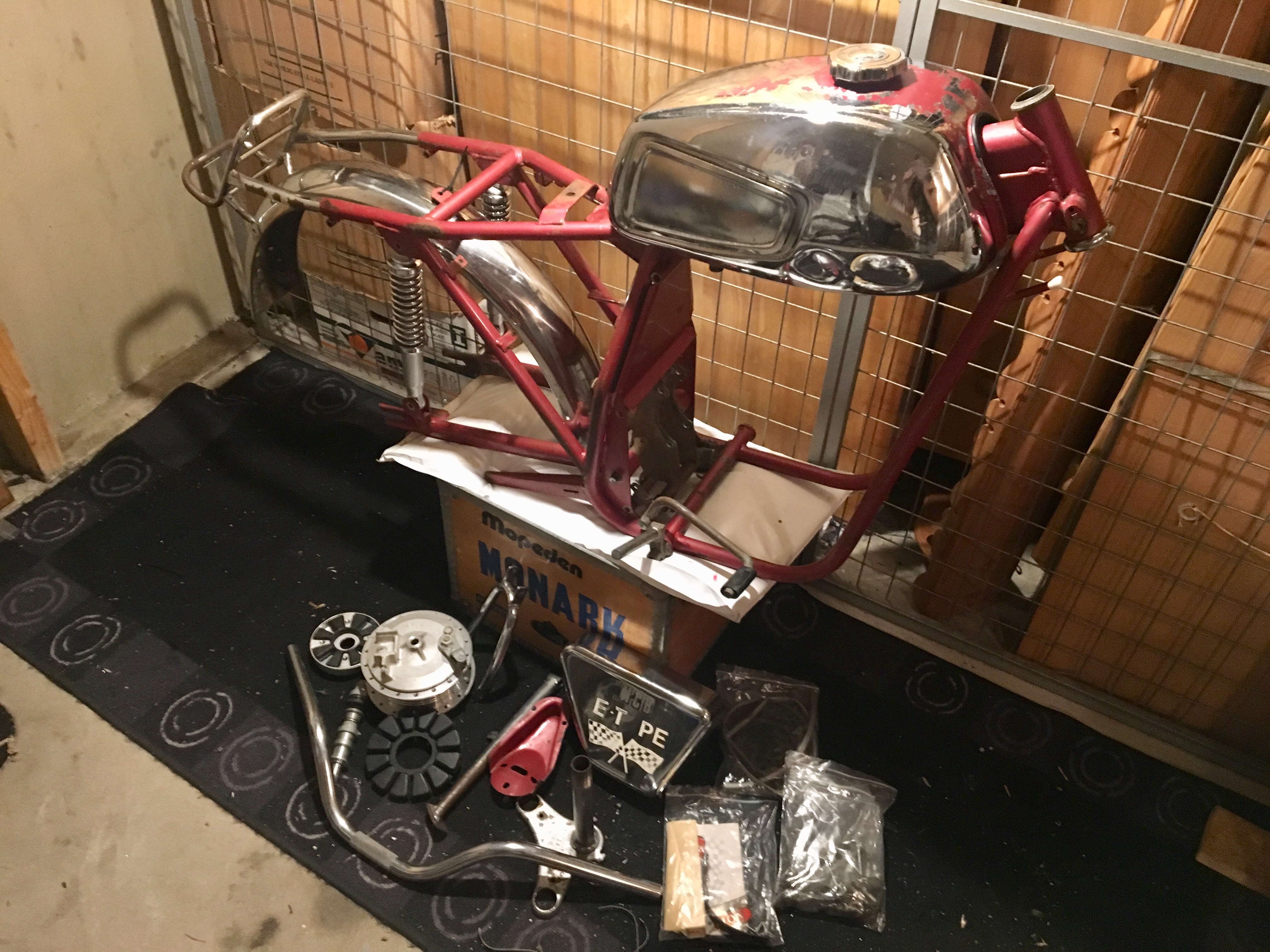 Tanken är då och behålla den i ”orginalskick” och försöka bygga ihop den med så mycket nos/orginal delar det bara går men inte ta bort charmen i det slitna.. motormässigt blir det antingen och plocka EKF:en från 1239an med avgassystemet eller plocka ner ytterligare en NOS motor från hyllan. Denna gången en 50/3 vind eller fläktkyld. Men det Lutar åt EKF:en.