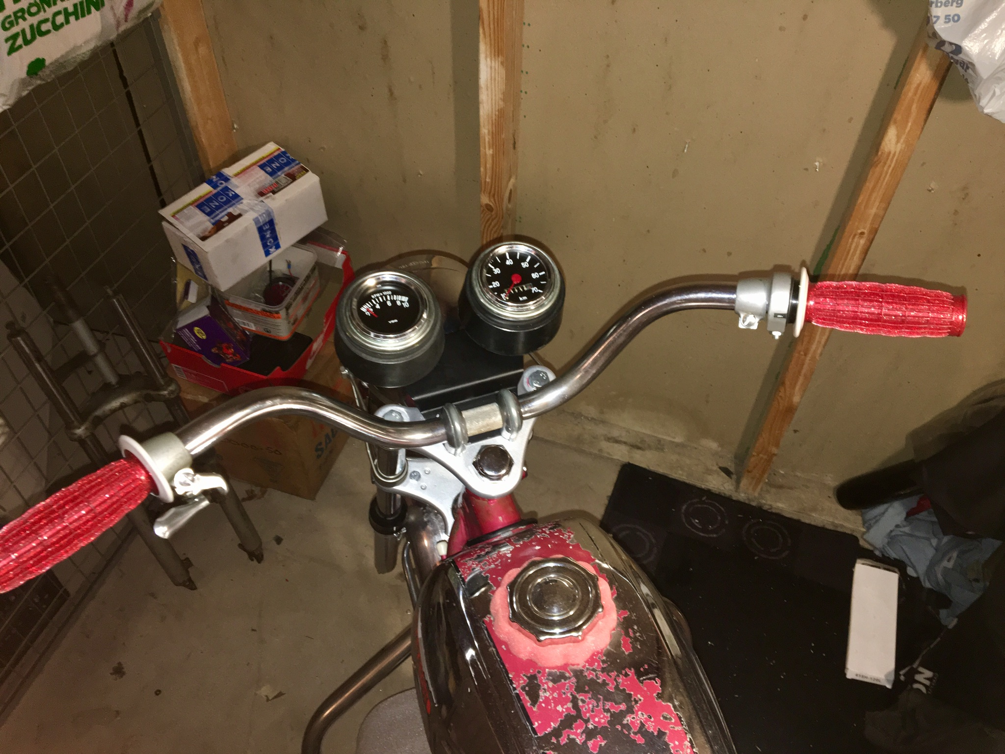 nos all the way på styret, man ska använda det som ligger i hyllan... och ja kanske inte optimalt med luftfilter där inne men inte meningen att den ska gå som en raket heller, då hade 80cc suttit på. Får se hur de lirar när den är klar!