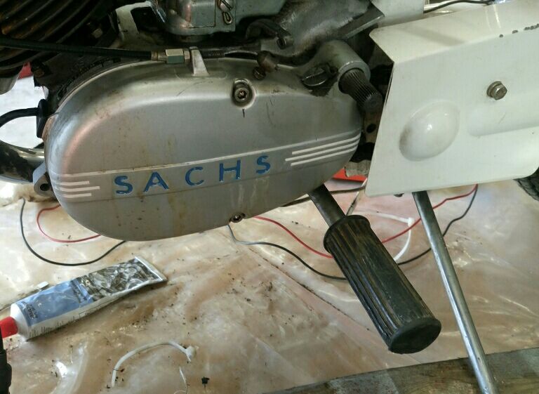 Jag har en fin Sachs 2Vxl utan topp men annars komplett med förgasare cylinder kolv. Pluggen sitter kvar i cylindern och har en kolvlucka och den går fina kåpor m.m Oljan på kåpan borde gå att tvätta bort