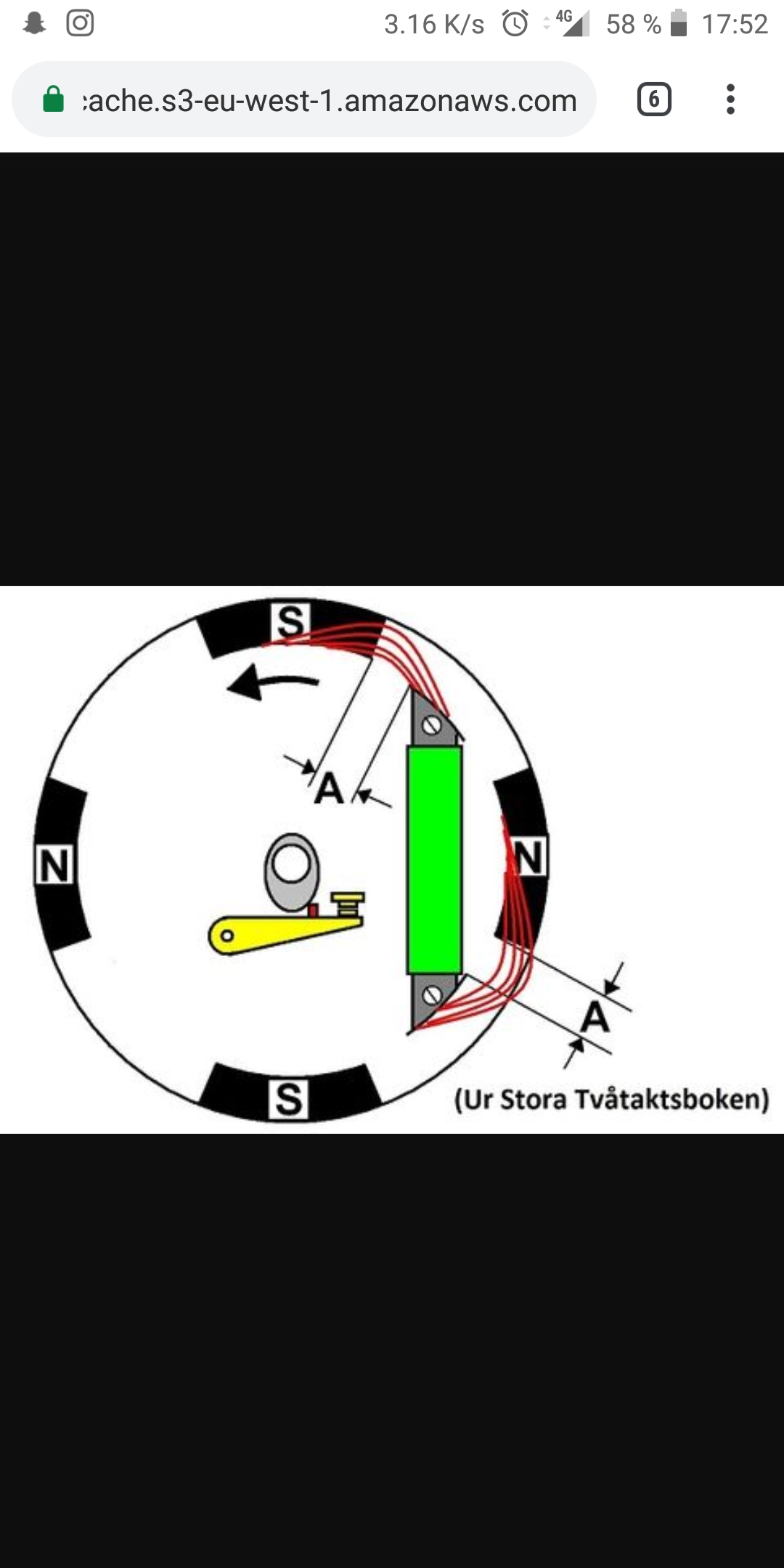Man får markera lägena för kanten på tändspolen utanför svänghjulet radie och läget för svänghjulets magneter på svänghjulets utsida med ex märkfärg så går det lätt att mäta. Kanske inte exakt på tiondels mm men bra nog. Normalt är det ju inga problem med fältbryt avståndet så lände man använder rätt tändplatta/ svänghjul kombination och rätt brytaravstånd. Börjar man blanda dem så blir det problem och då visar den typen av mätning vad som felar...
