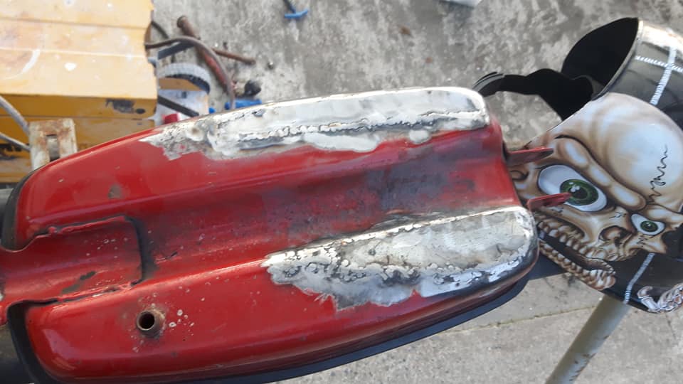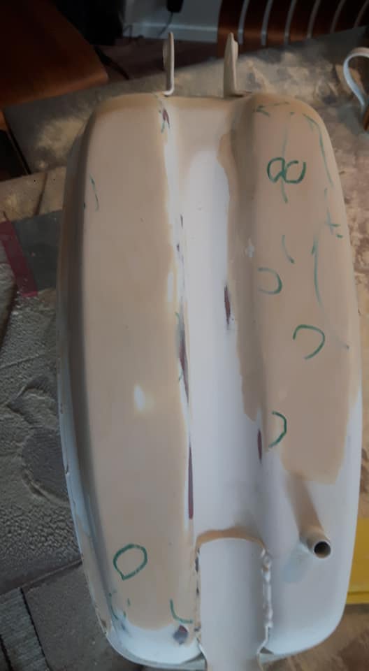 Det är nu man kan bli lite väl kritisk man måste komma ihåg att våtslipen fixar merparten av det småttigaste... Men nån stans får man lägga gränsen men å andra sidan Tanken typ mopedens viktigaste lackerade detalj.