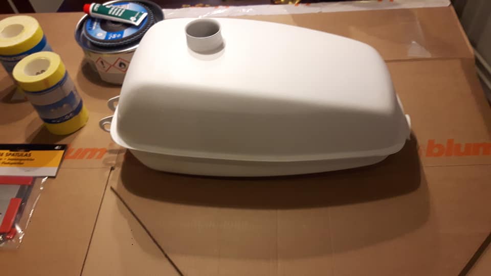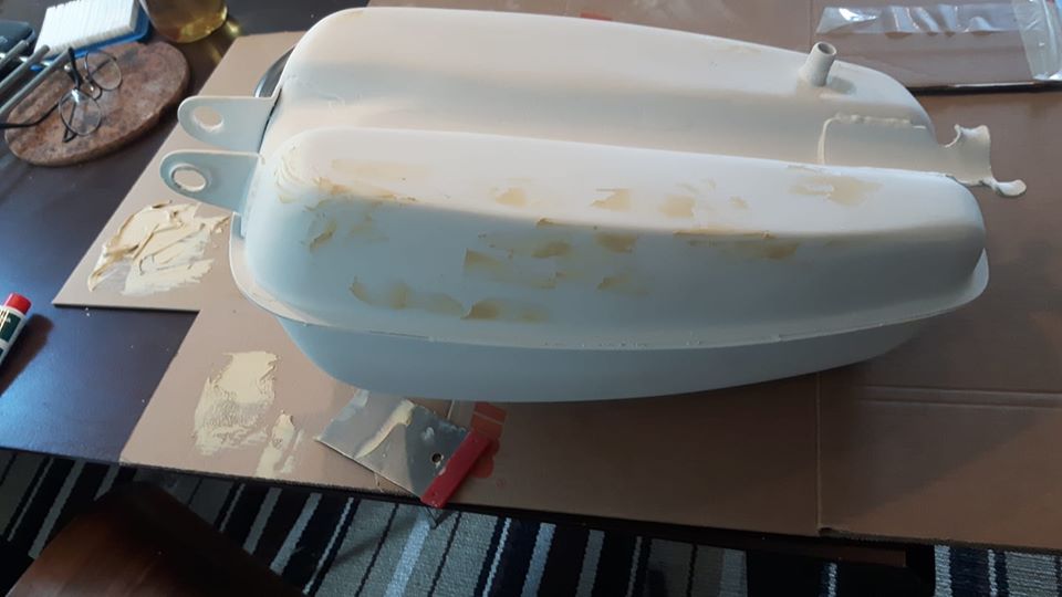 Sen bestämde jag att tankens ovansida får duga inte hundra perfekt men bra nära.. Nu fått våtslipat tankens bottendel så den ska få sig ett nytt lager efter maskering..