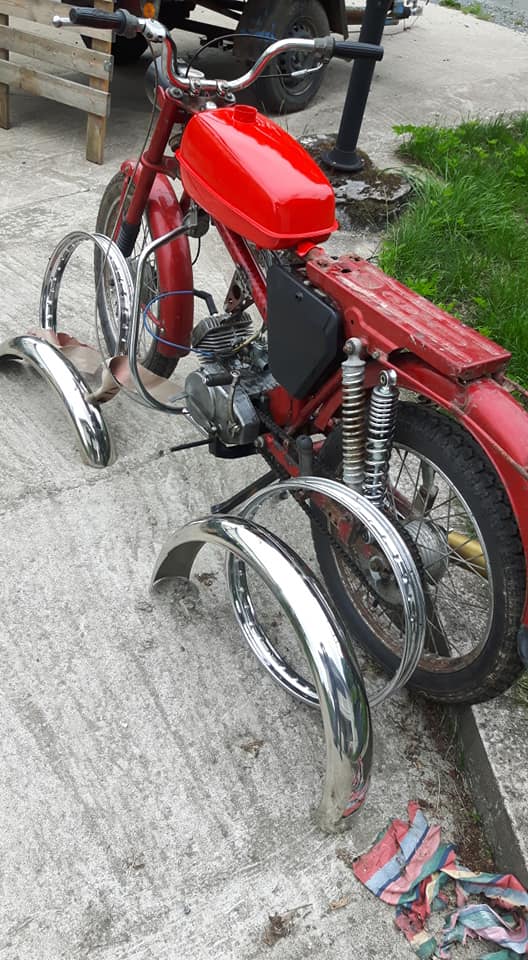 Det blir rostfria skärmar ny ljuddämpare.. Ja hittade några på mopedrenovering ohålade vilket passar Rometen perfekt..