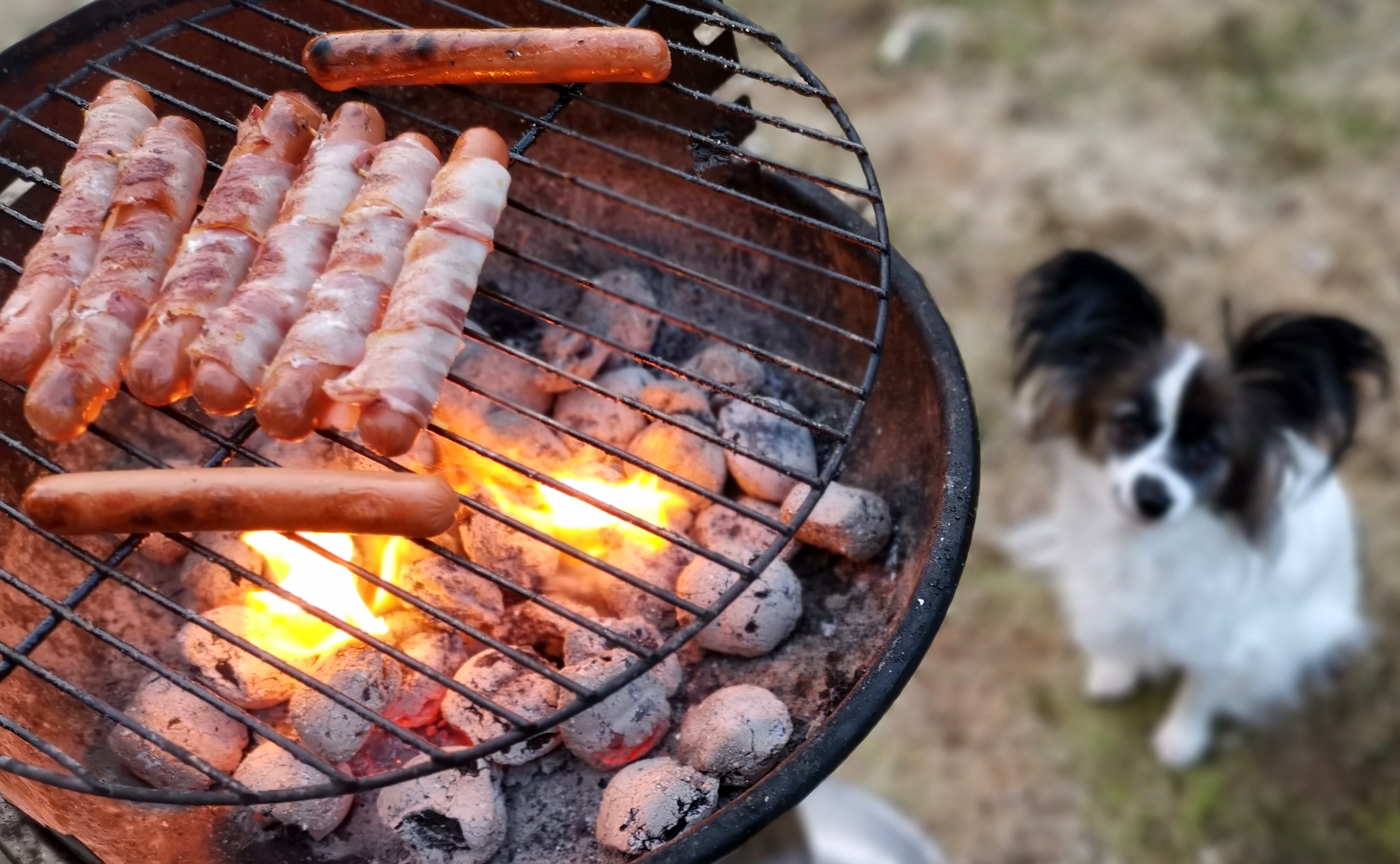En sån där liten lurvig filur,har jag också brevid mej när jag står vid grillen. Beredd att attack-kasta sej fram och glufsa i sej köttbitar och allt annat möjligt skit som trillar ner.