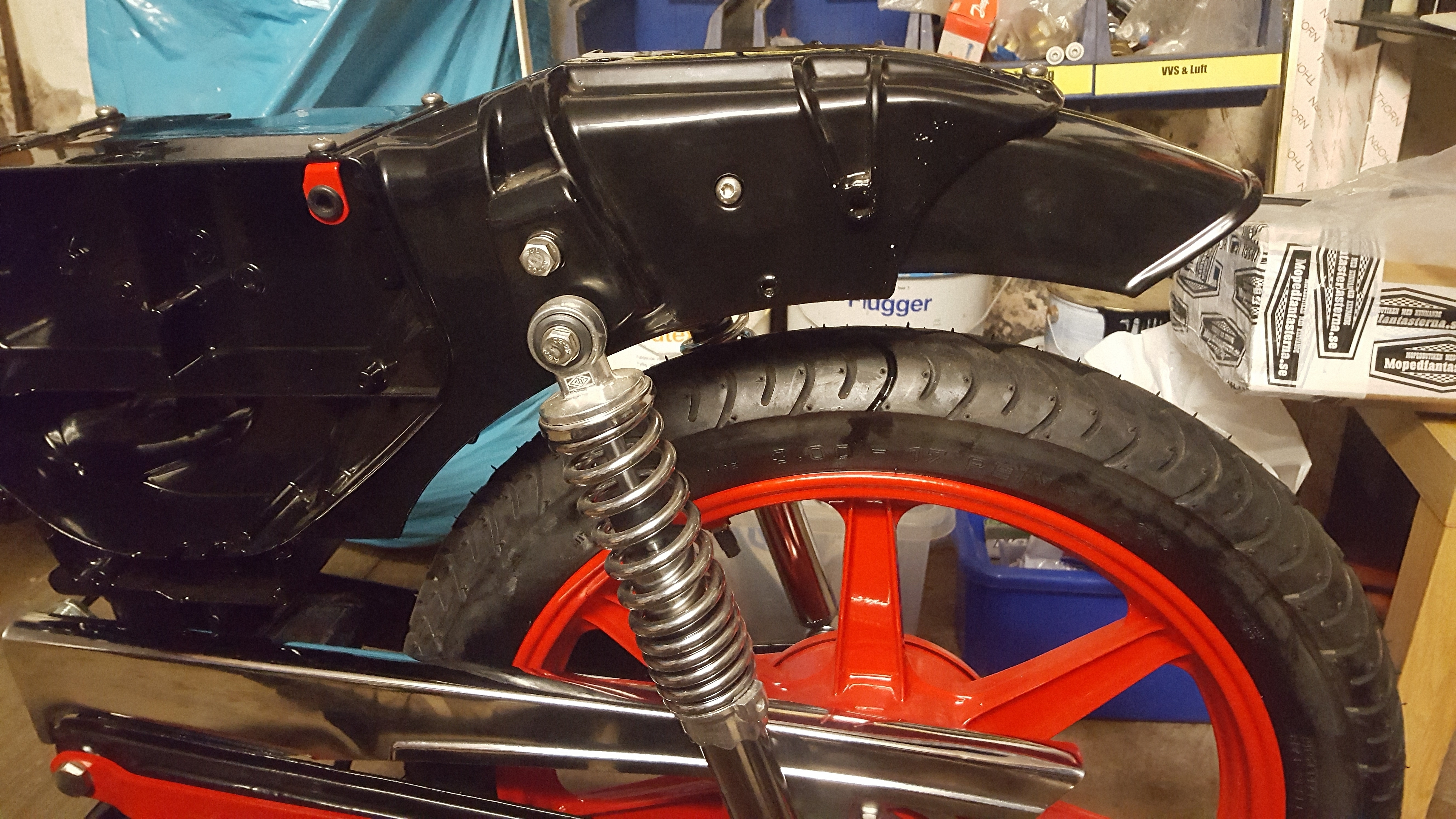 En idé tog form och jag svetsade ihop ett externt växelstopp. Den ersätter nitens funktion och efter injustering, har man en nästintill skottsäker uppväxling.