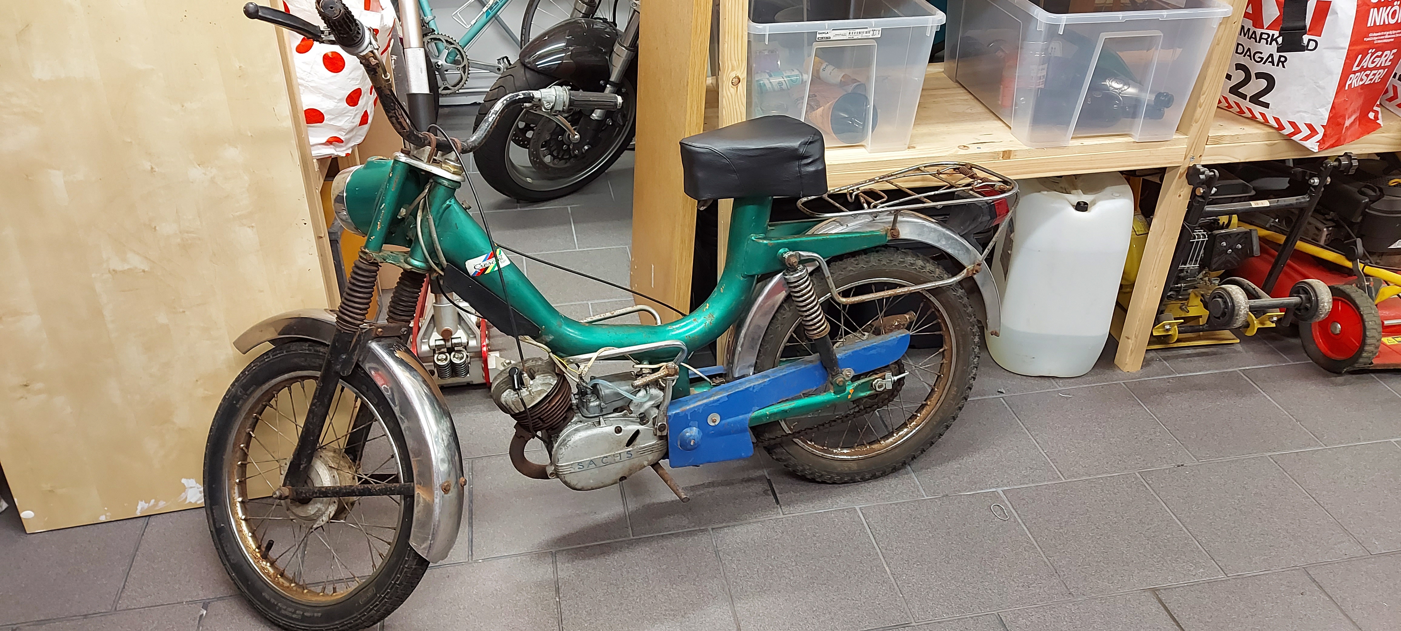 Ny på forumet. I dessa coronatider har jag pysslat med lite olika projekt. Nu i helgen slog jag till på en Compact 1248 i ett relativt risigt skick. Tanken är att jag och min 15 åriga grabb ska ha ett garageprojekt i vår. Jag har inte meckat mycket tidigare men tror mig vara relativt händig. Blir till att läsa och fråga mycket. Vi började med att plocka isär mopeden fullständigt. Motorn startar men mopeden saknar broms och kopplingsvajrar. Tanken är att renovera det som går att renovera. Samt köpa nytt/ begagnat i övrigt. Vilka nätbutiker är bra/prisvärda?