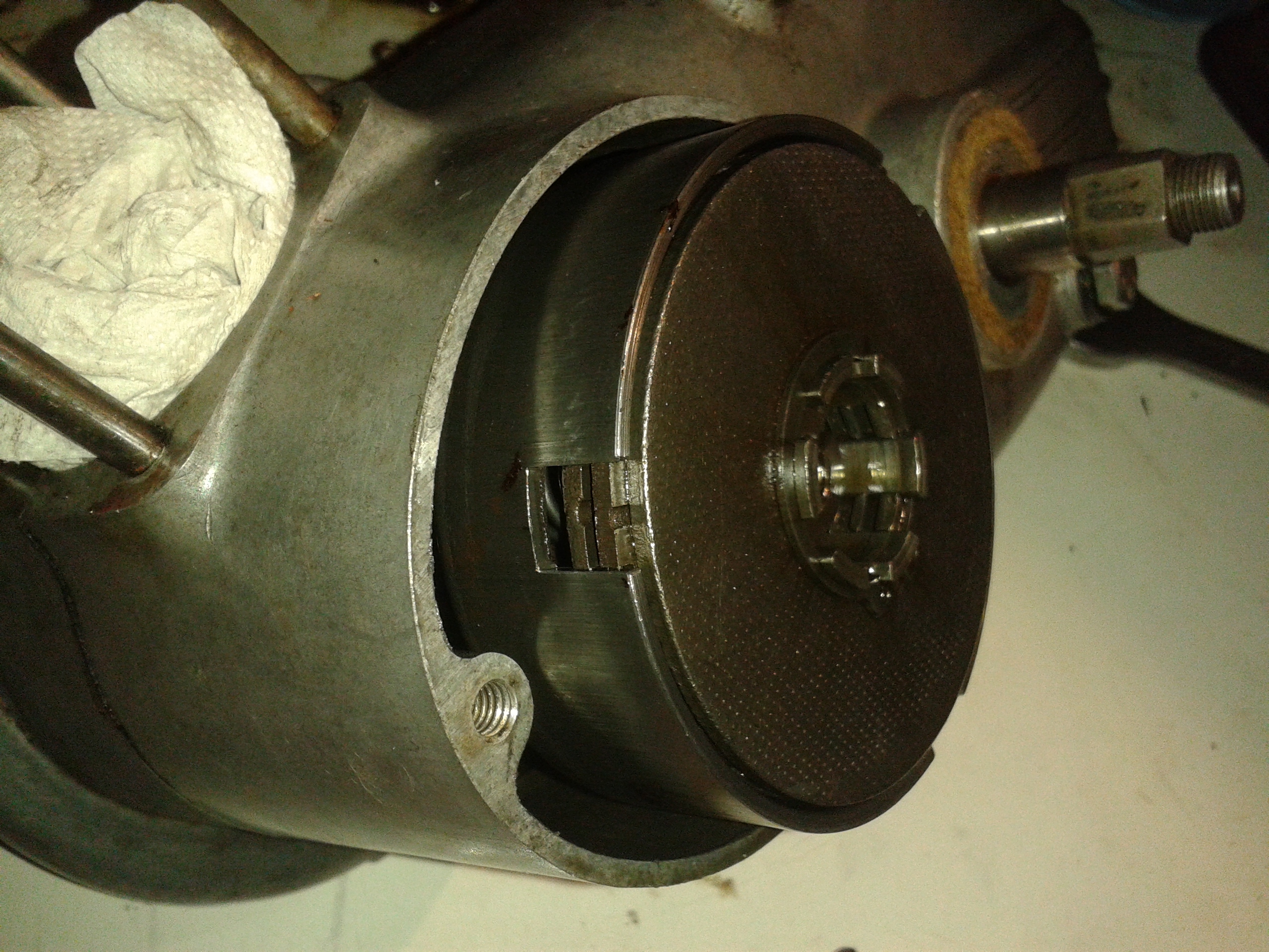 Det där drevet sitter på på en kona och är ökänt för att sitta hårt. Men med bra av dragare och lite värme på drevet skall det släppa :? Jag tycker att det är en lite jobbig motor också i övrigt att dela och montera ihop. Håll reda på på alla brickor.