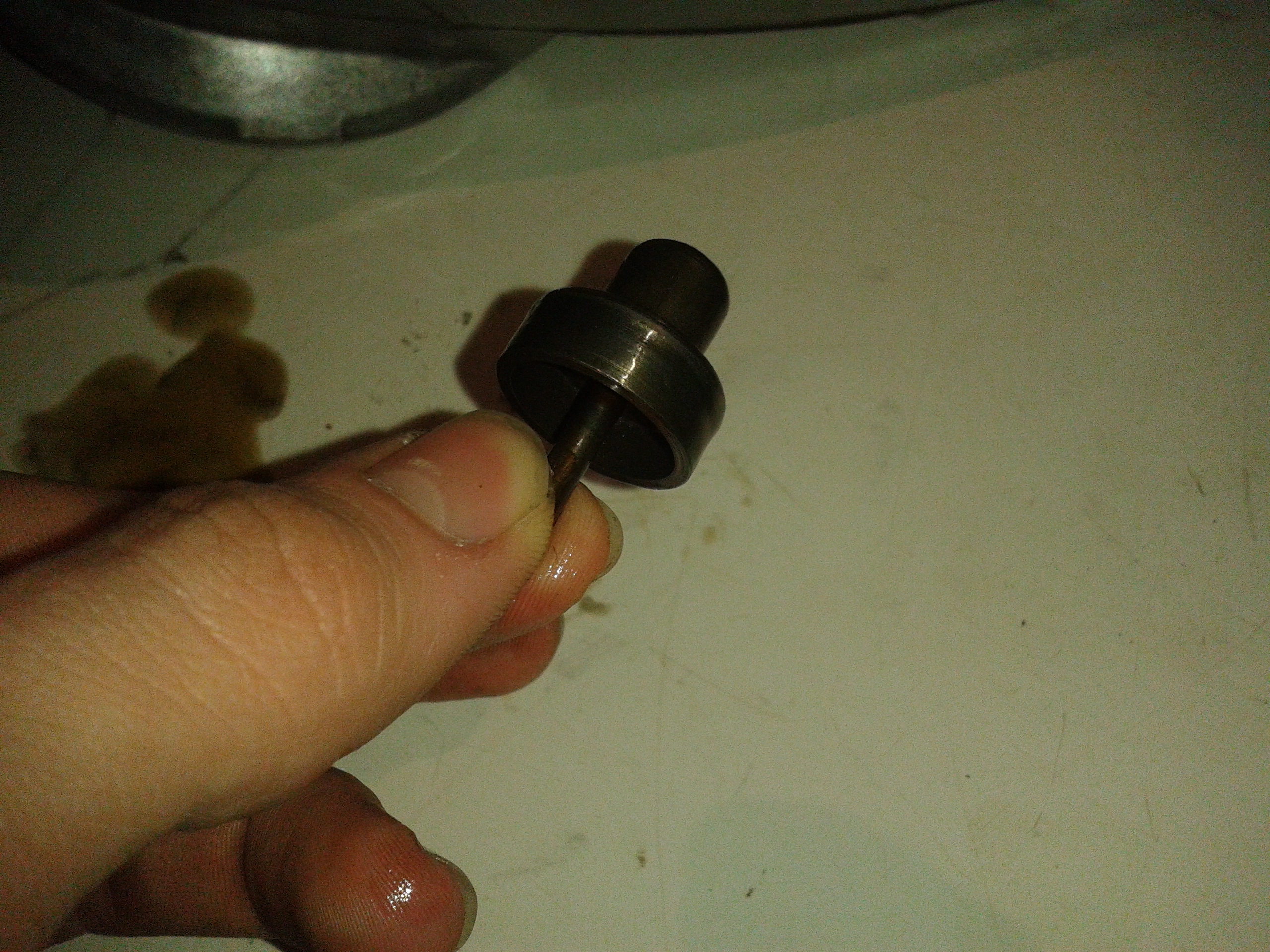 Och inte bara läckte, den var totalt förstörd! Där var bitar av den i hela växellådan. Jag gissar på att den på något vis har vandrat ur blocket och sedan dragits med av transmissionskedjan och på så sätt fått ig en rejäl omgång