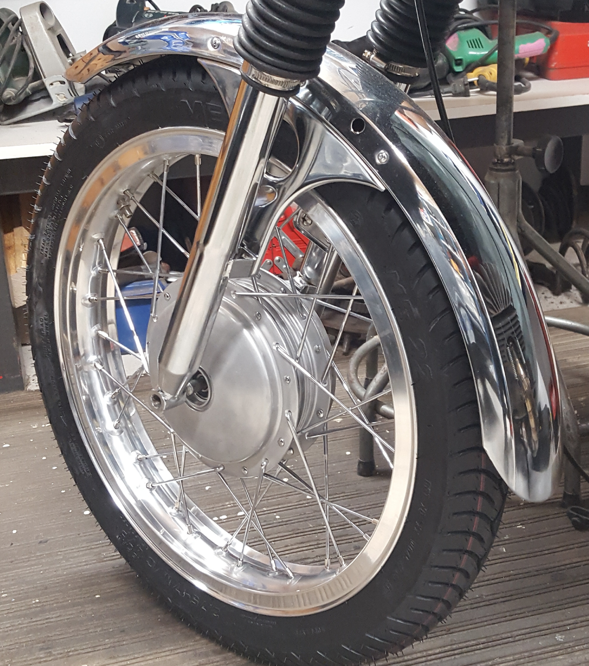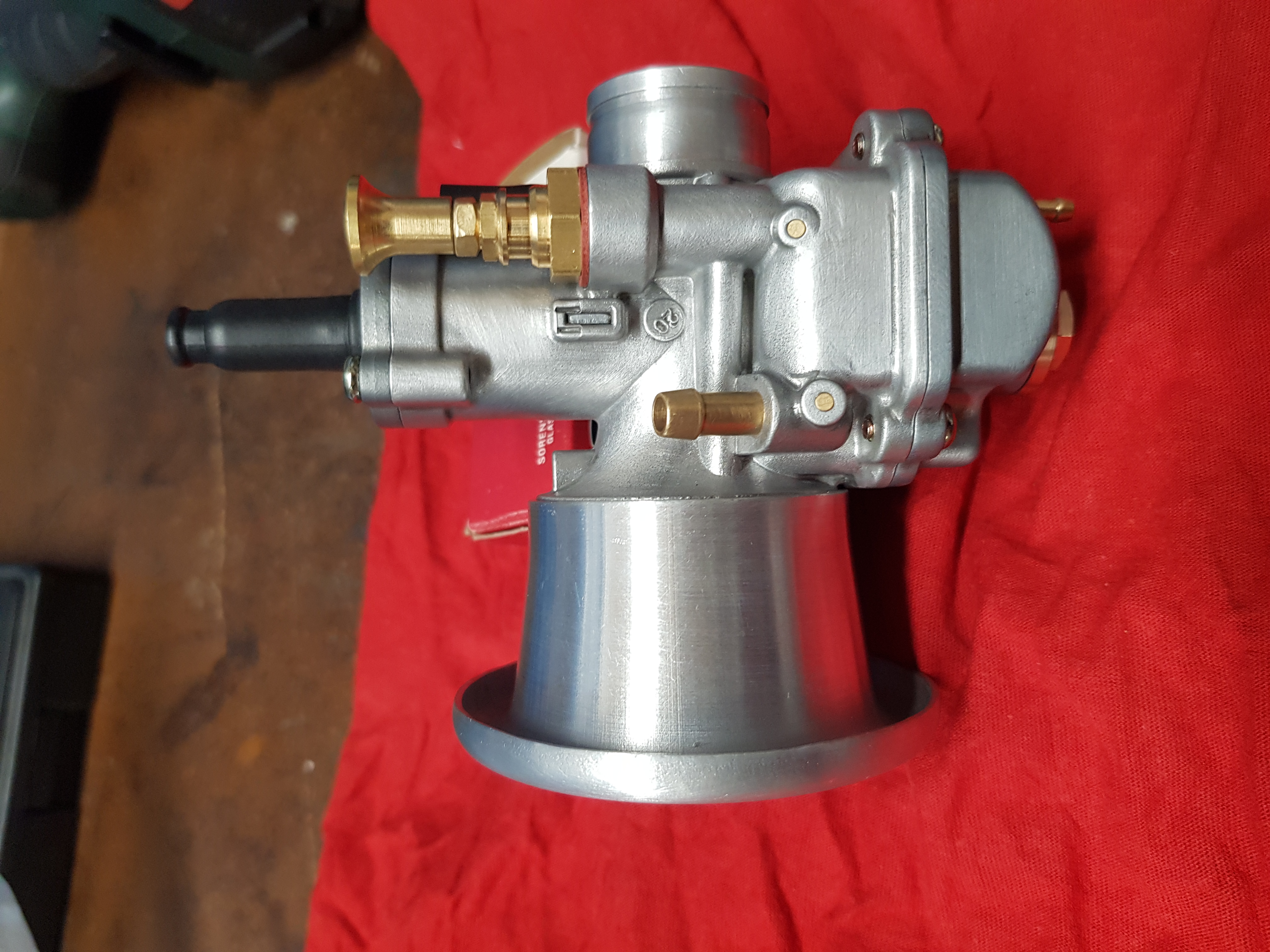 Till förgasare har jag valt Polini comp 24mm med anpassad tratt i aluminium. Givetvis är förgasaren pimpad med mässingsdetaljer som ny bottenplugg och moddad choke.
