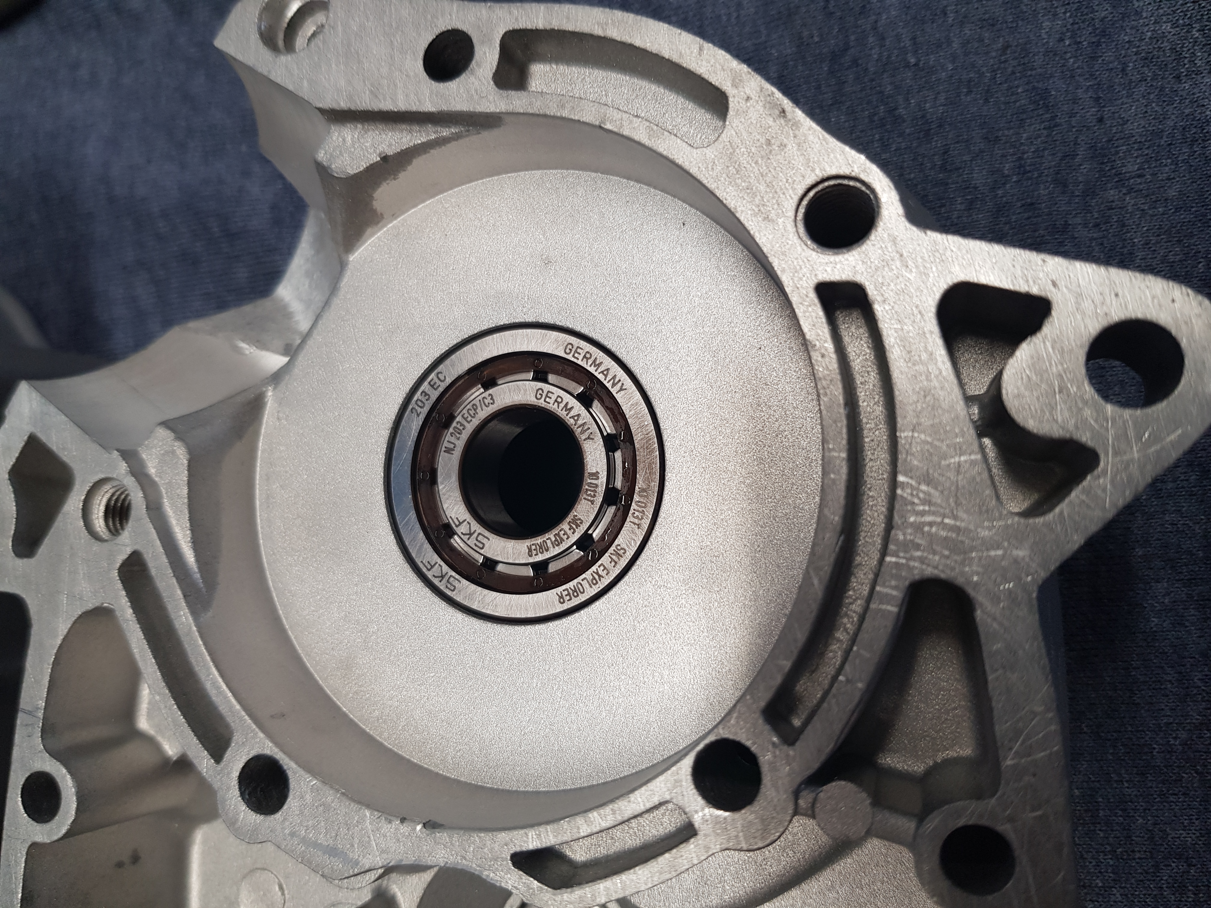 I vänster blockhalva monterade jag ett rullager. Perfekt när man delar motorn!