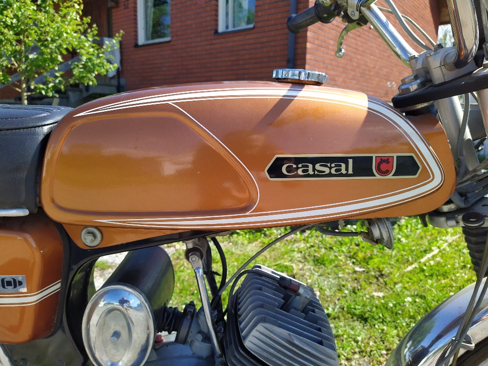 Min kollega funderar på att sälja sin Casal K190 -79 som han köpte ny som 15-åring. Den har idag gått ca 530 mil och är i ett fint skick. All krom är bra, lacken är fin så när som på några repor på ovansidan av tanken. Inga bucklor, inga revor i sadeln. Motorn går fint, den läcker lite från oljepluggen men det är gissningsvis bara koppar/aluminiumbrickan som behöver bytas. Lite allmän genomgång skulle mopeden säkert må bra av, då den har stått i många år.