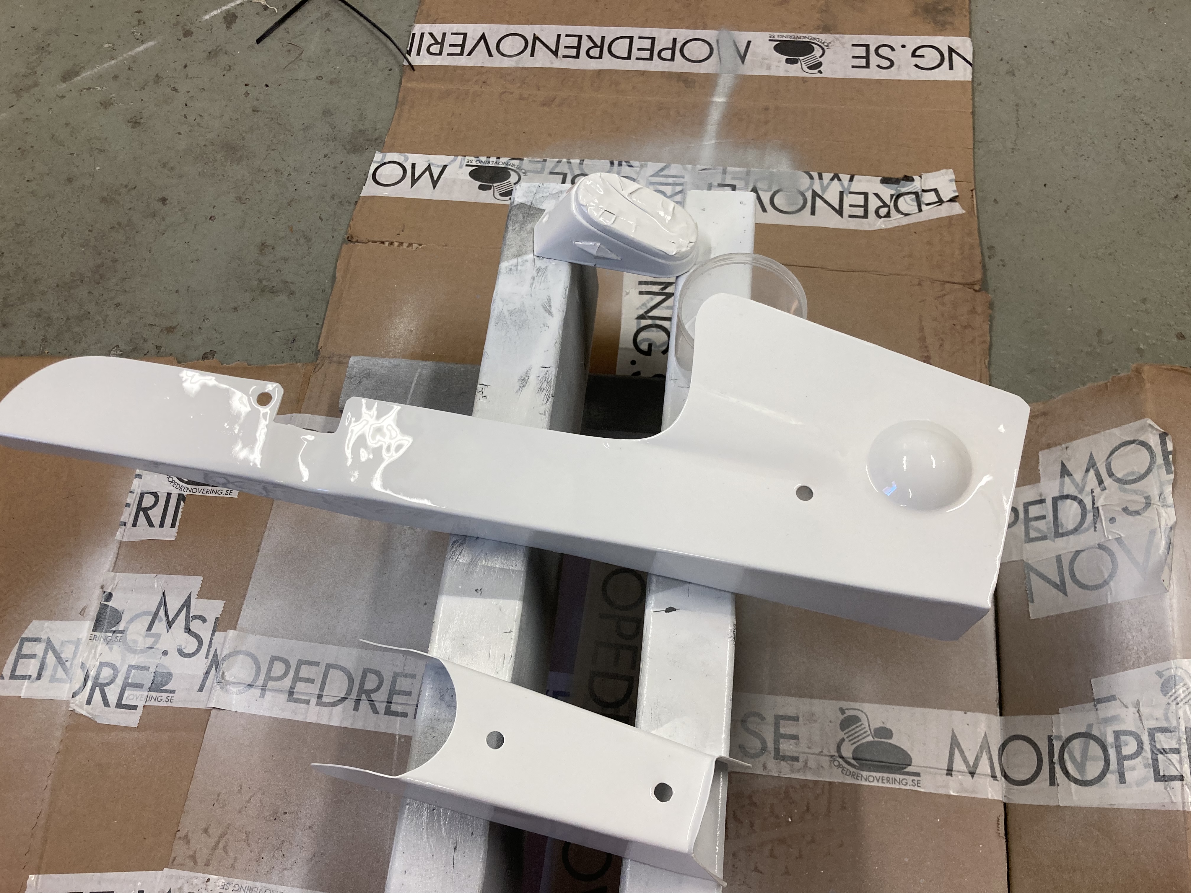 Nu ska lacken få härda riktigt ordentligt innan vi lägger på 2k klarlack. Sedan kan man påbörja monteringen. :D