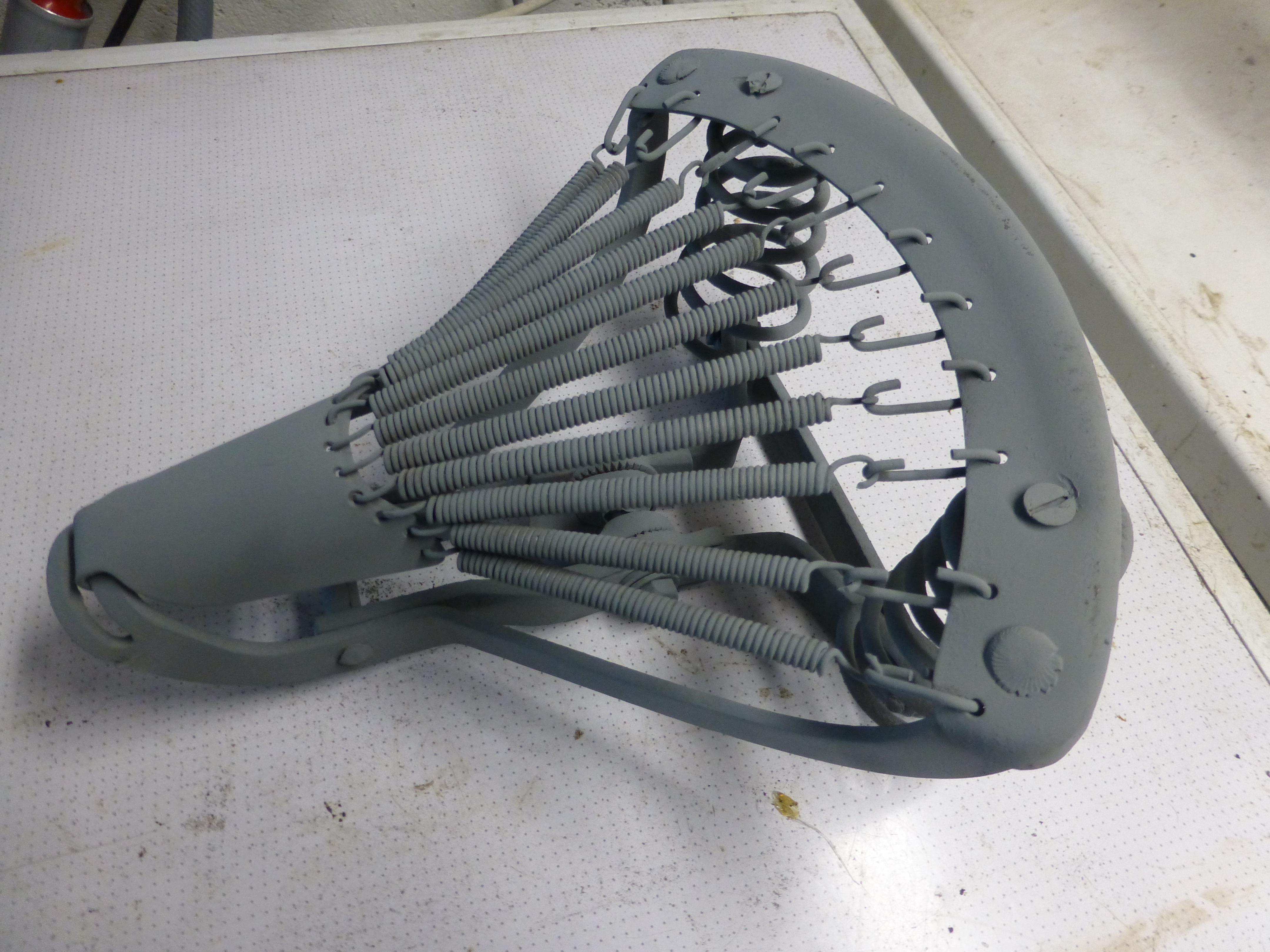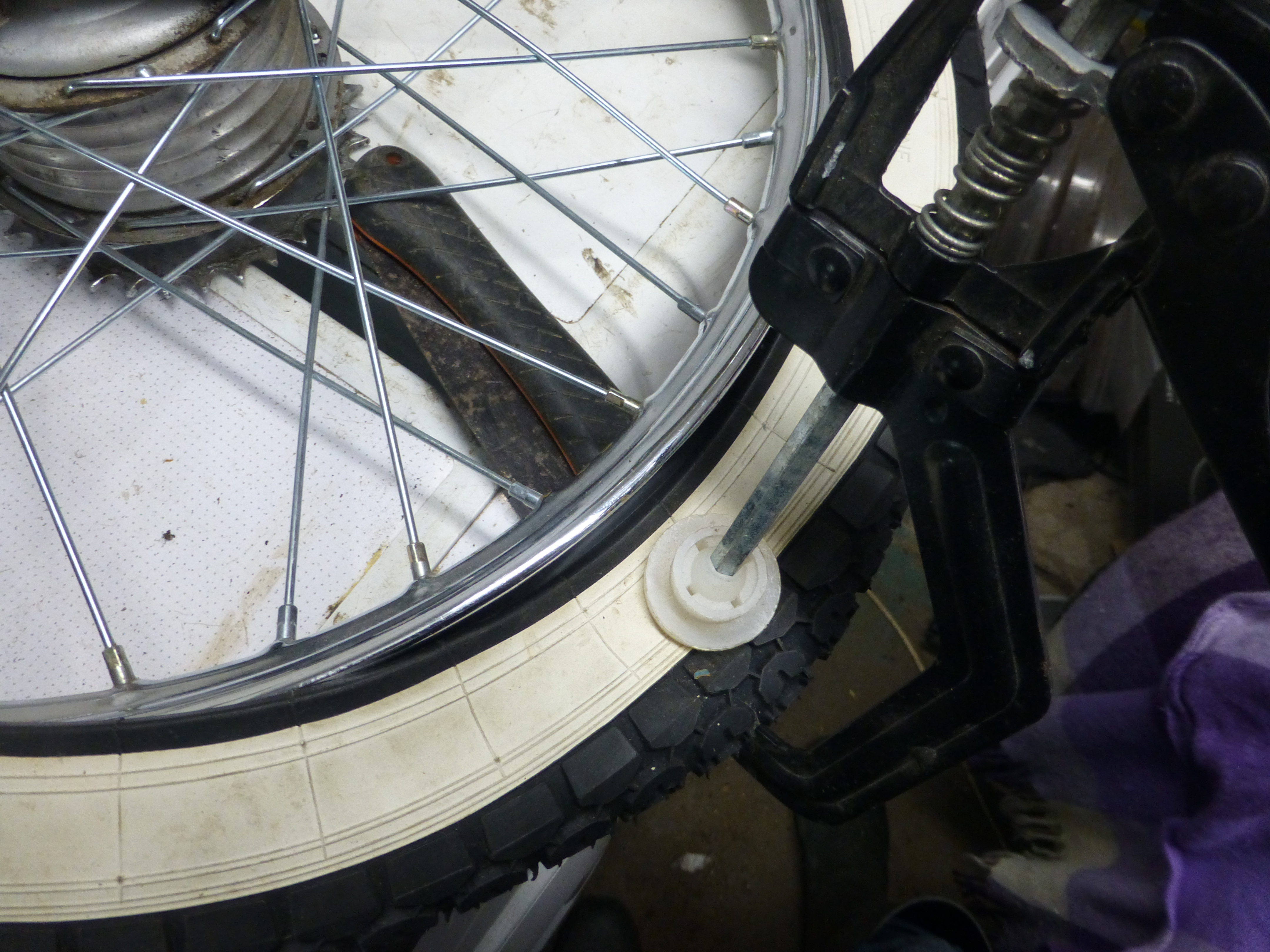 Så nu tog jag fram ramen och började polera bort den bruna färgen för att se vad som doldes under, såg inte bra ut först, en mörkare brun färg dök upp. Men sedan vitt underst! Så kanske dags att ge tillbaka den vita fabriks färgen till den mopeden.