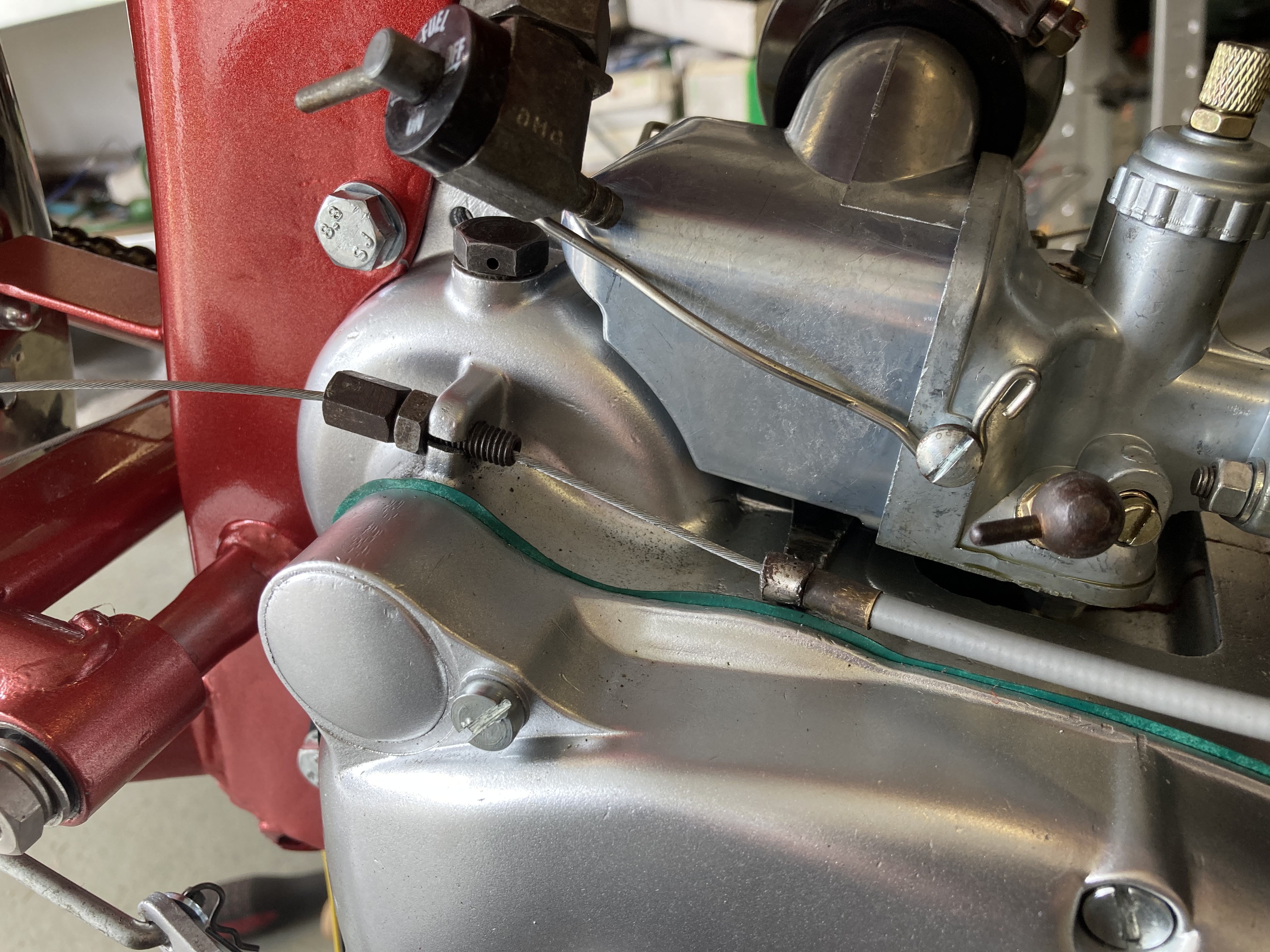 Så som jag har förstått ska denna vajerdragning med vajerhöljet på växelarmen vara original. Det är i alla fall så ont om plats på en Compact att detta är nog det bästa alternativet, istället för höljet i justerskruven och vajernippeln på växelarmen som man brukar göra det.