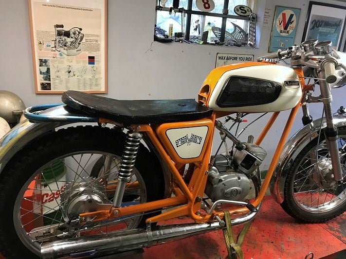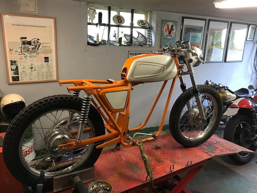 Det är en blandning av Kreidler- och MCB-nav, Casal- eller Zündappfälgar och begagnade ekrar från en Puch Montana.