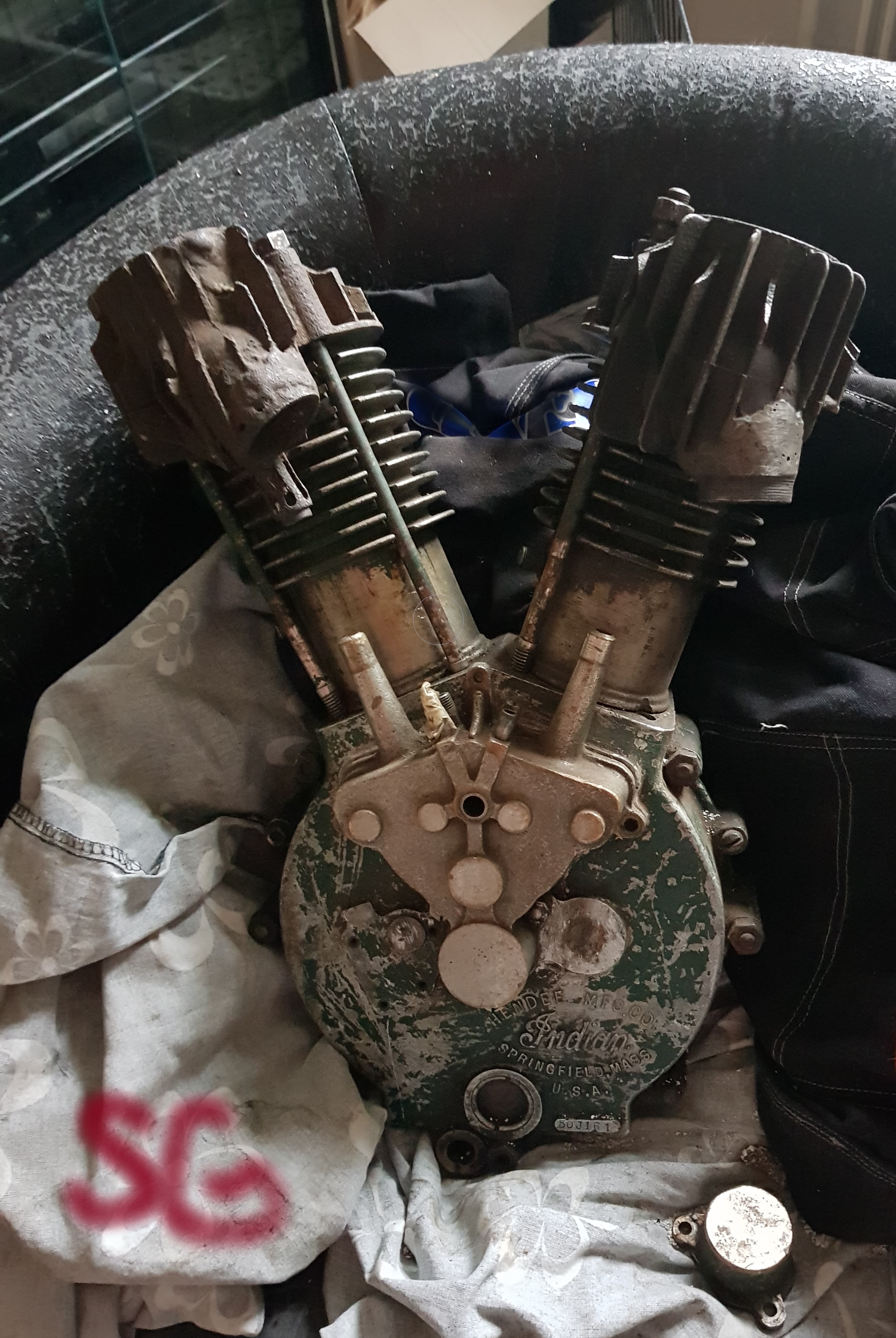 Lite update i nöjet att ge sig på en gammal Indian. Köpte 2 toppar dyra, passa ej dvs var Power plus, sälja dem, to brake even. Köpa dyr låda med 10 tal Indian, tank styre, kick pedal och generator hel mm.
