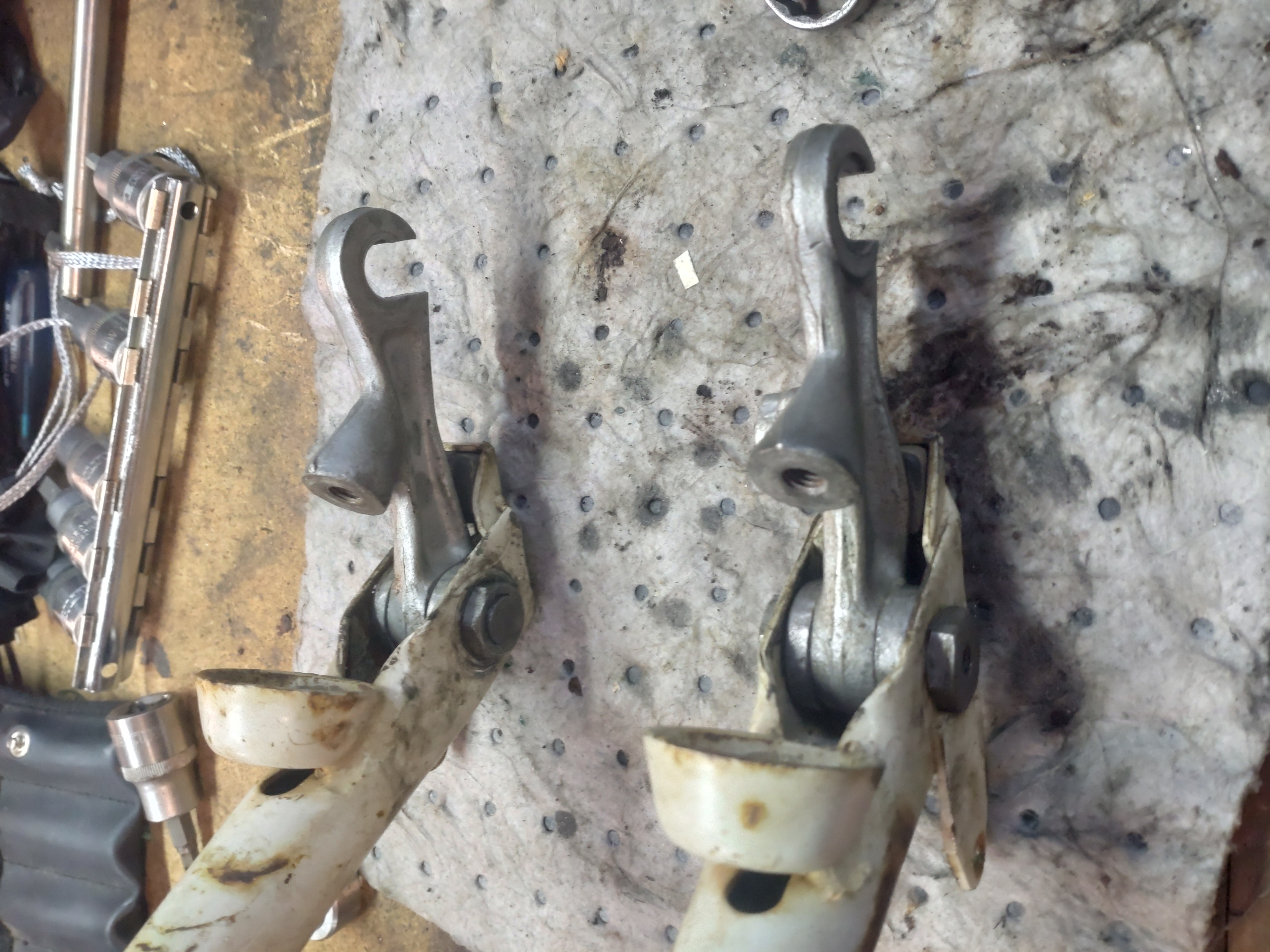 Framhjulet ville skjuva iväg sidledes vid inbromsning, och kände glapp i bottenlänken. Så har varit isär med allt, rengjort, blästrat, shimsat och fettat. Klar förbättring, men behöver nya gummimojjar, då dom gamla inte överlevde isärtagandet.