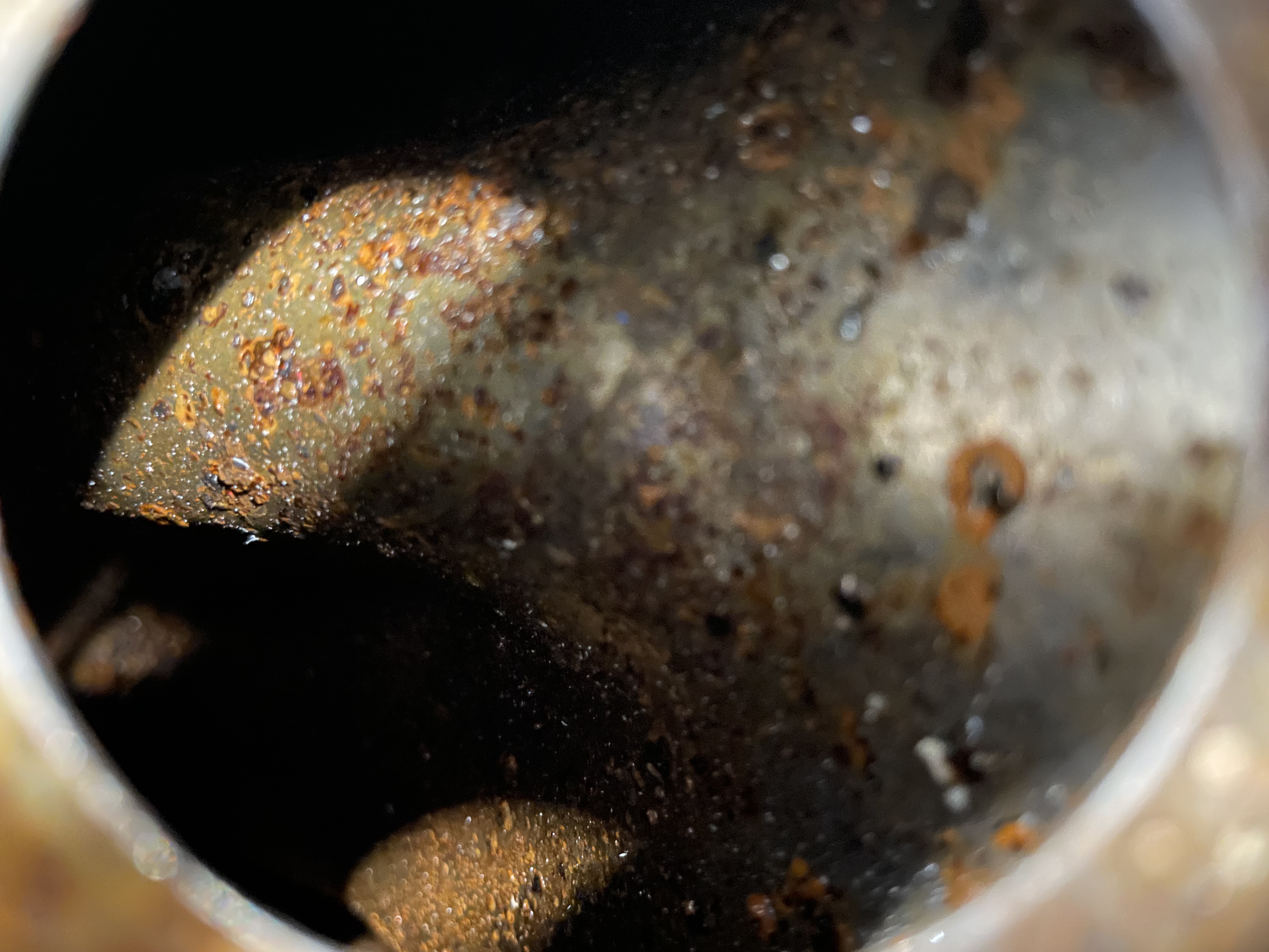 Sen spolade jag mycket vatten för att skölja bort rester, i med värmepistol och ånga bort det sista vattnet och sen spruta i en halv flaska WD40, så lär det inte rosta innan jag får i bensin.