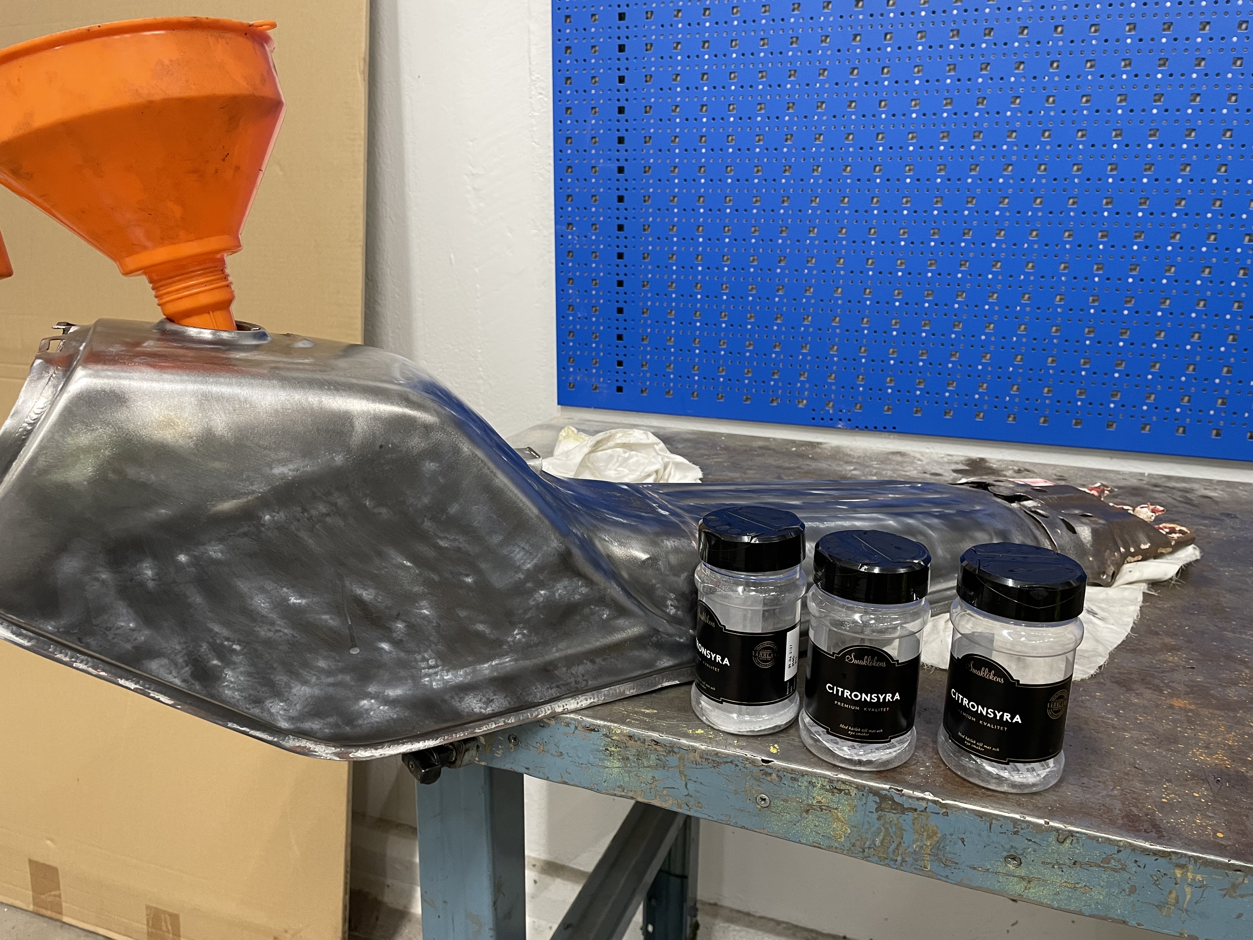 Efter ett så gediget rostborttagningsarbete, så skulle jag definitivt använt en keramisk tanksealer invändigt. Typ POR15 eller KREEM, eller liknande av annat fabrikat.