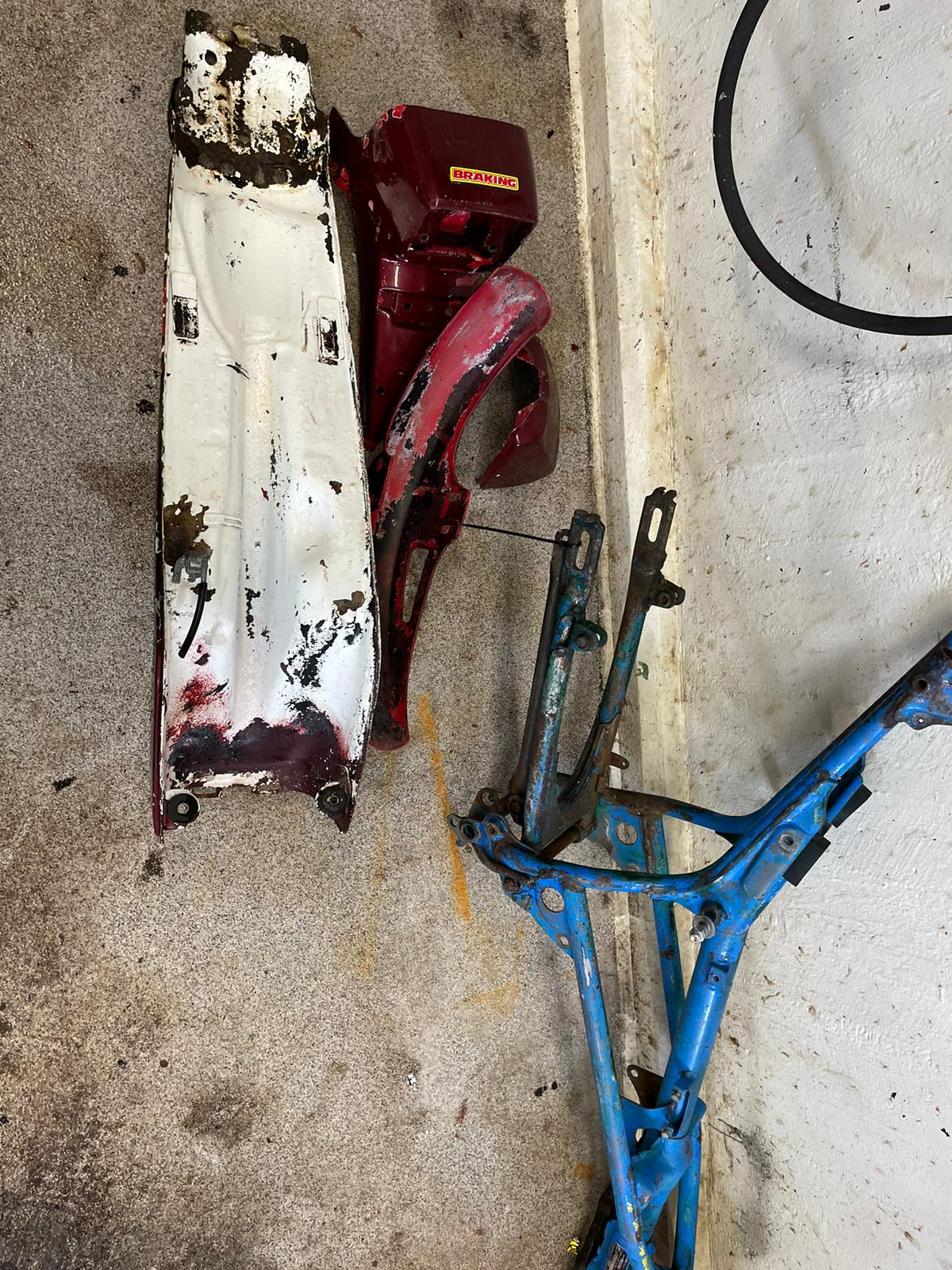 Ramen är från en blå 81-82a, tanken är från en vit MB och plasten från en röd…