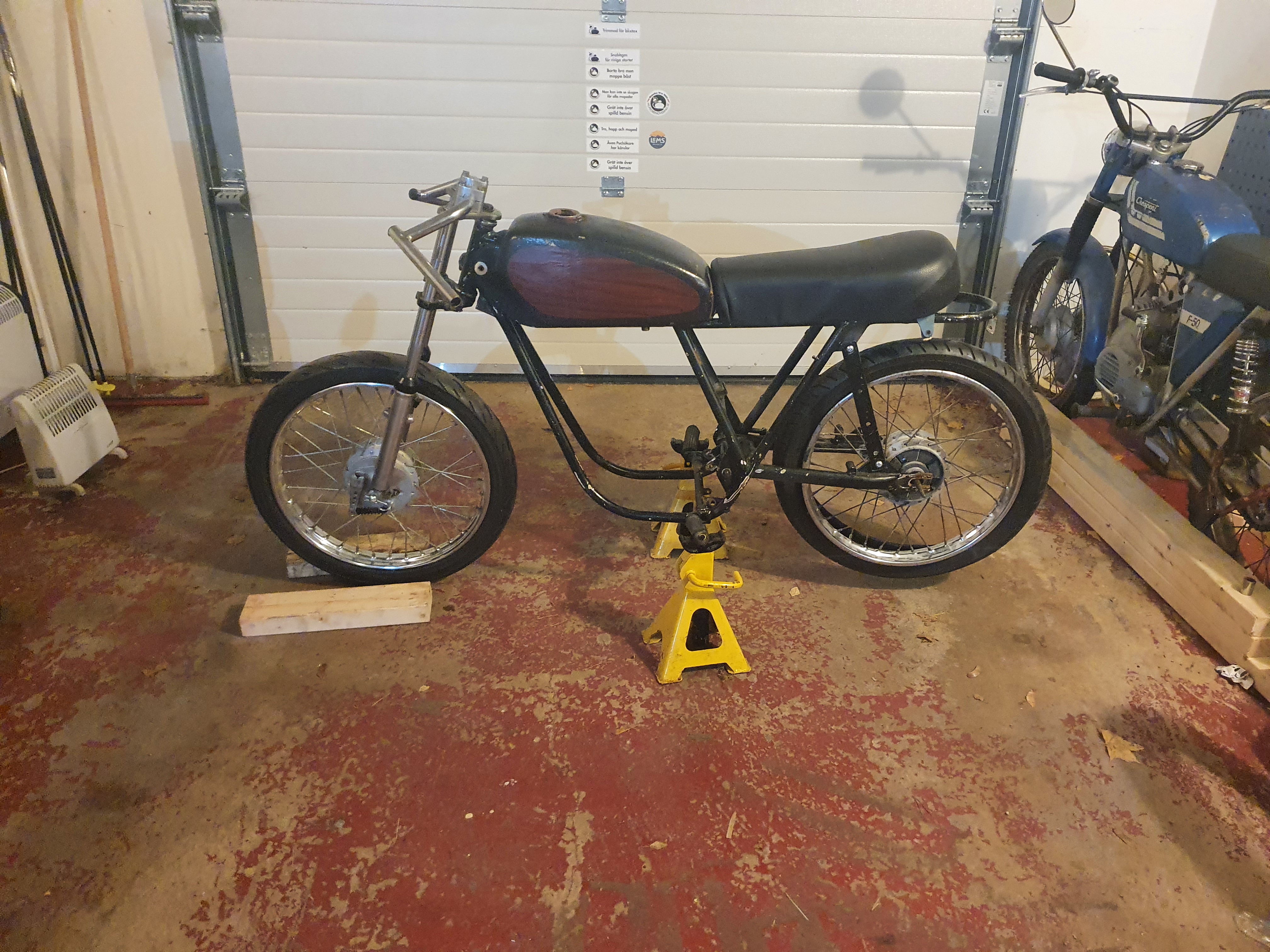 Det dök upp en risig tom ram på tradera som jag högg på. Köpte senare till sadel och tank.