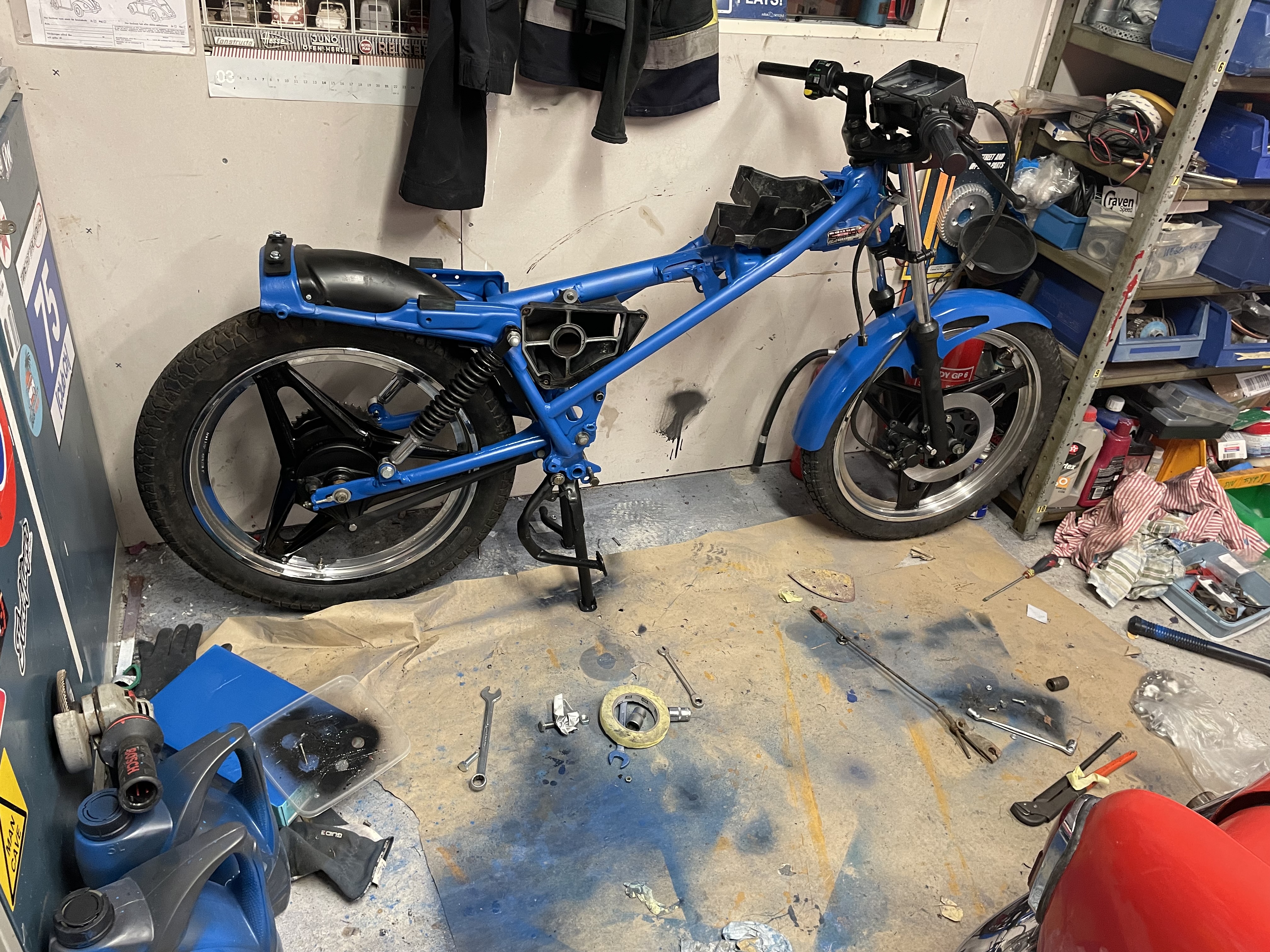 Matt klarlack på ramen och blank på resten, det borde bli ett coolt stuk