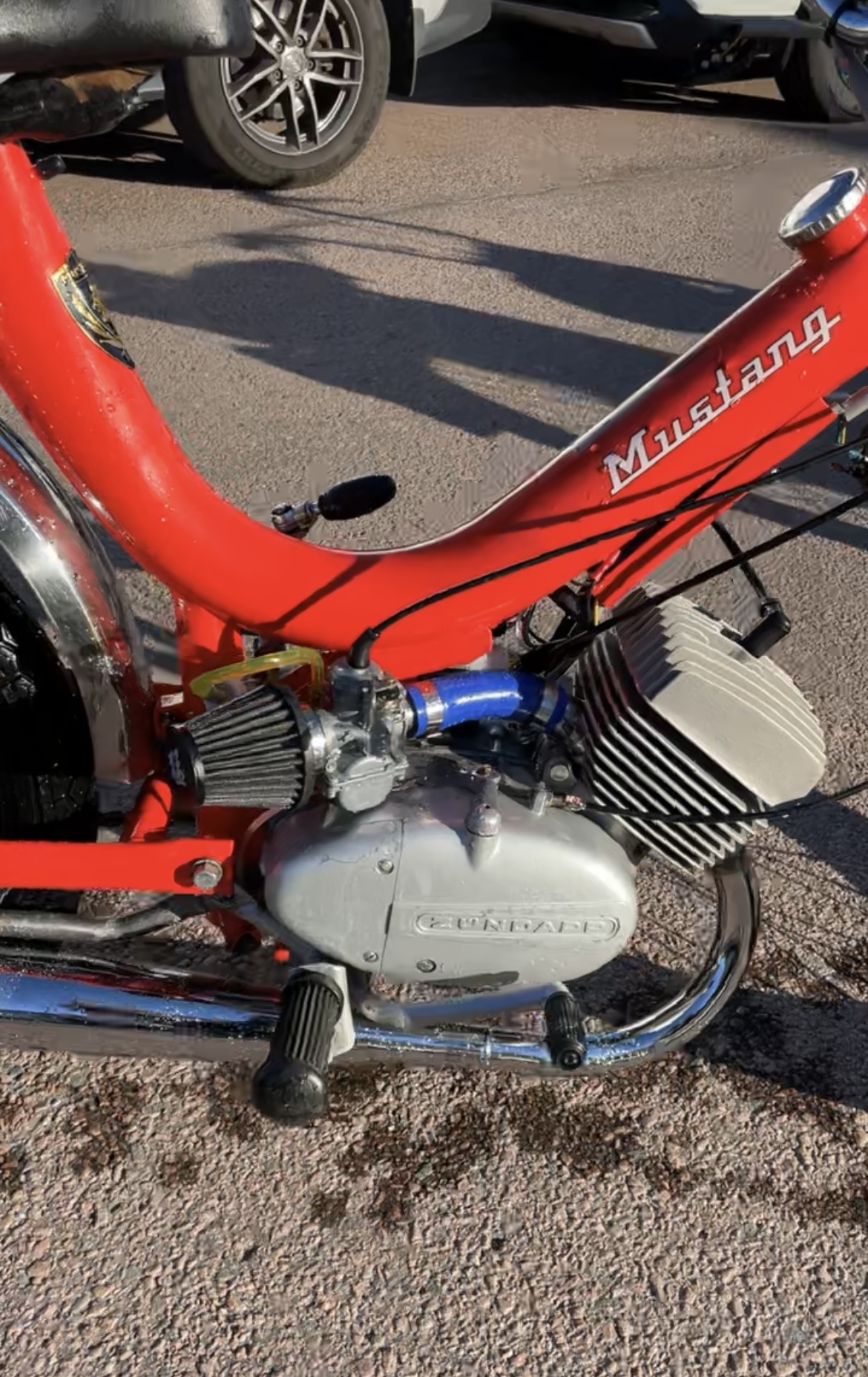 Nu är det såhär va, jag har gått och blivit med en riktigt fin Mamba som är nötrimmad. Vi snackar en Zundapp 3-växlad som är kompletterad med 70cc Athena Minitherm, Mikuni 22mm och RP-pipa. Han går bra!