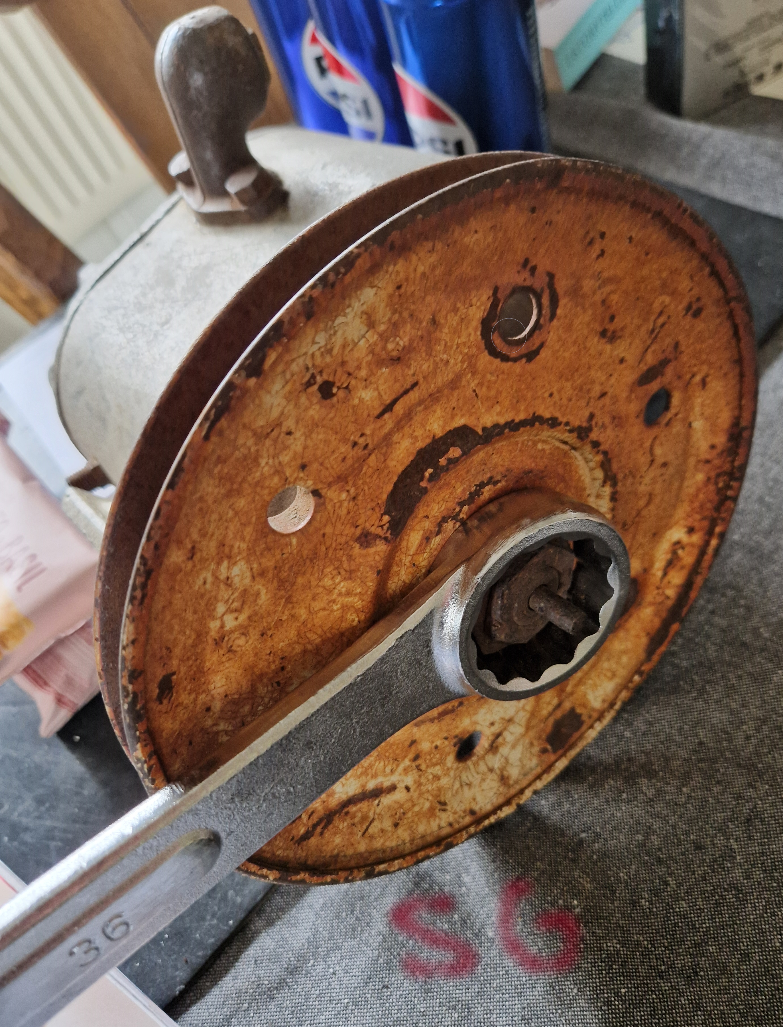 Tyvärr har jag konstaterat att bult ej samma på halva muttern, 36 blocknyckeln passar och man kan dra utan kugga av men glappar lite, känns som en verkligen konstig mutter. När jag mätte var det 36 ish jag vet ju tum men var verkligen 36. Skumtomte.