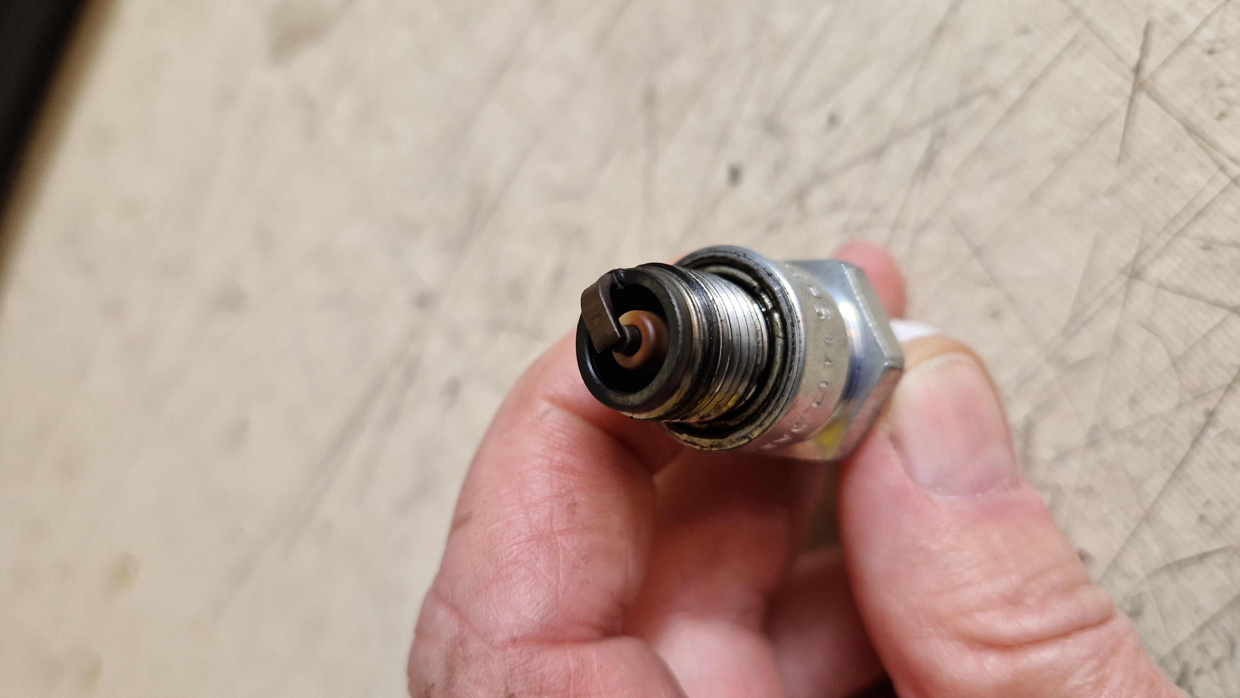 Hur ser tändstiftet ut, några tecken där på att motorn går varm = för mager bränsleblandning?