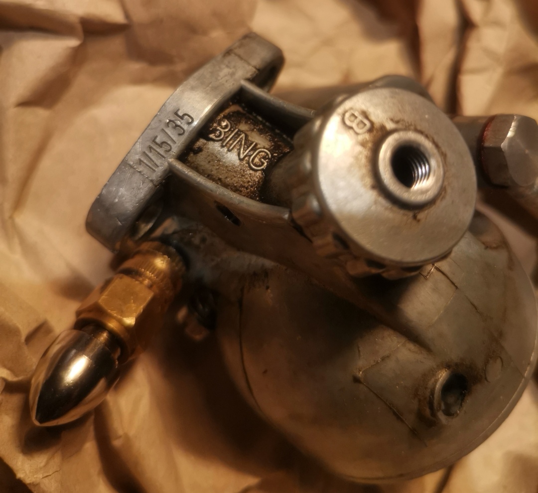 En org. Bing är en bra (och enkel) förgasare som är MYCKET bättre än sina Kinesiska kopior och borde funka fint till en 3.5hk / "ur-pluggad" cylinder.