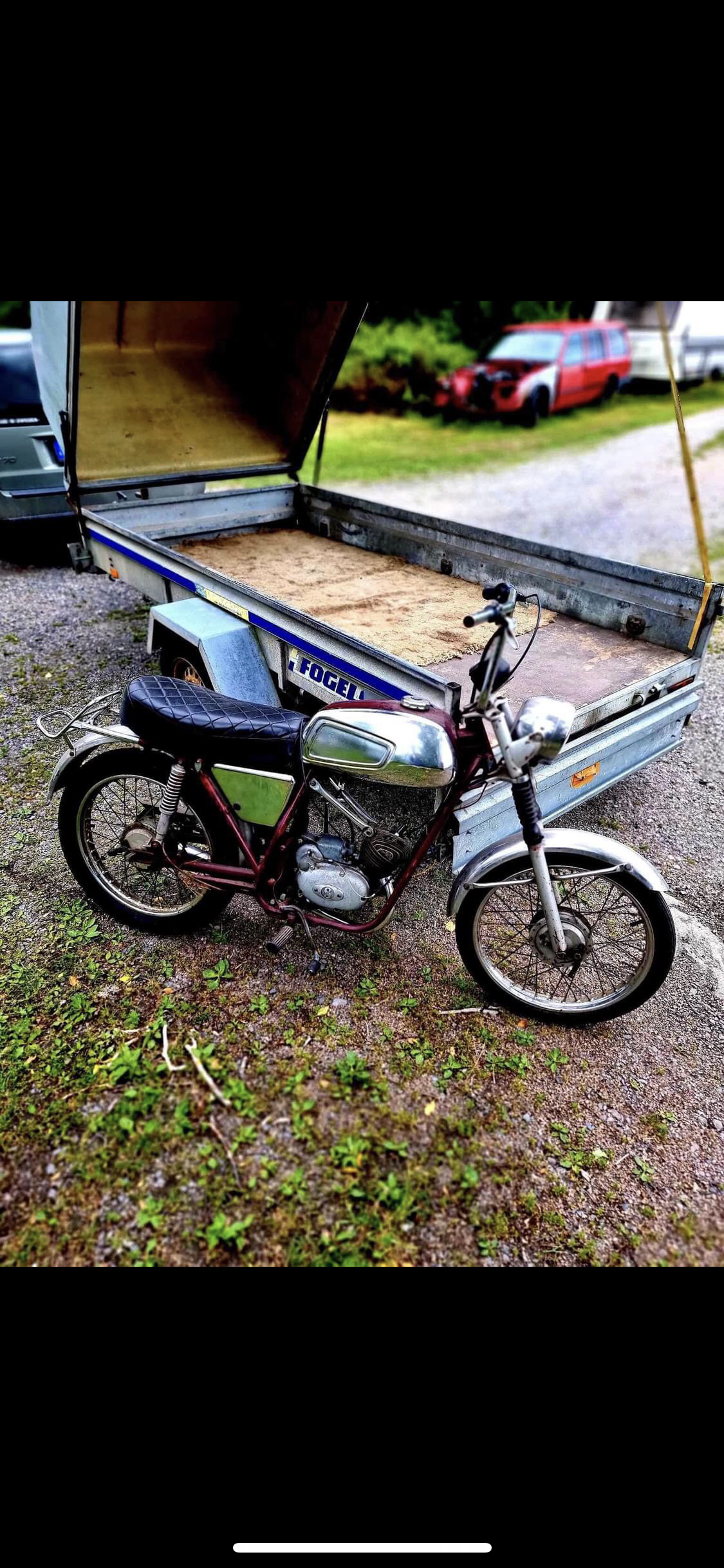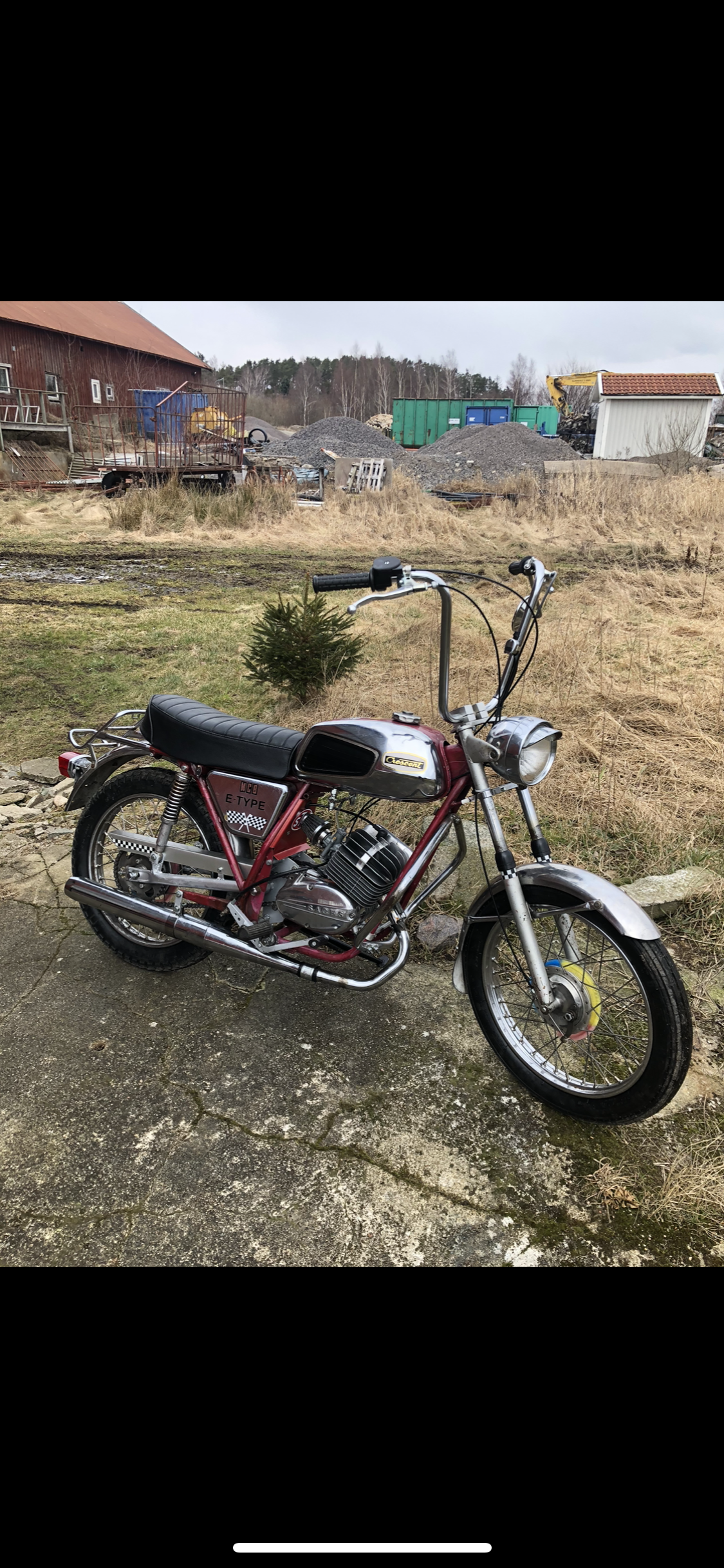 Bytte till mig en Crescent E-Type ifrån 1974 sensommaren 2023. Den var i så uruselt skick, så många hemska lösningar, sliten, ful lack, en extremt sliten 2vxl hand Sachs-motor satt i ramen?