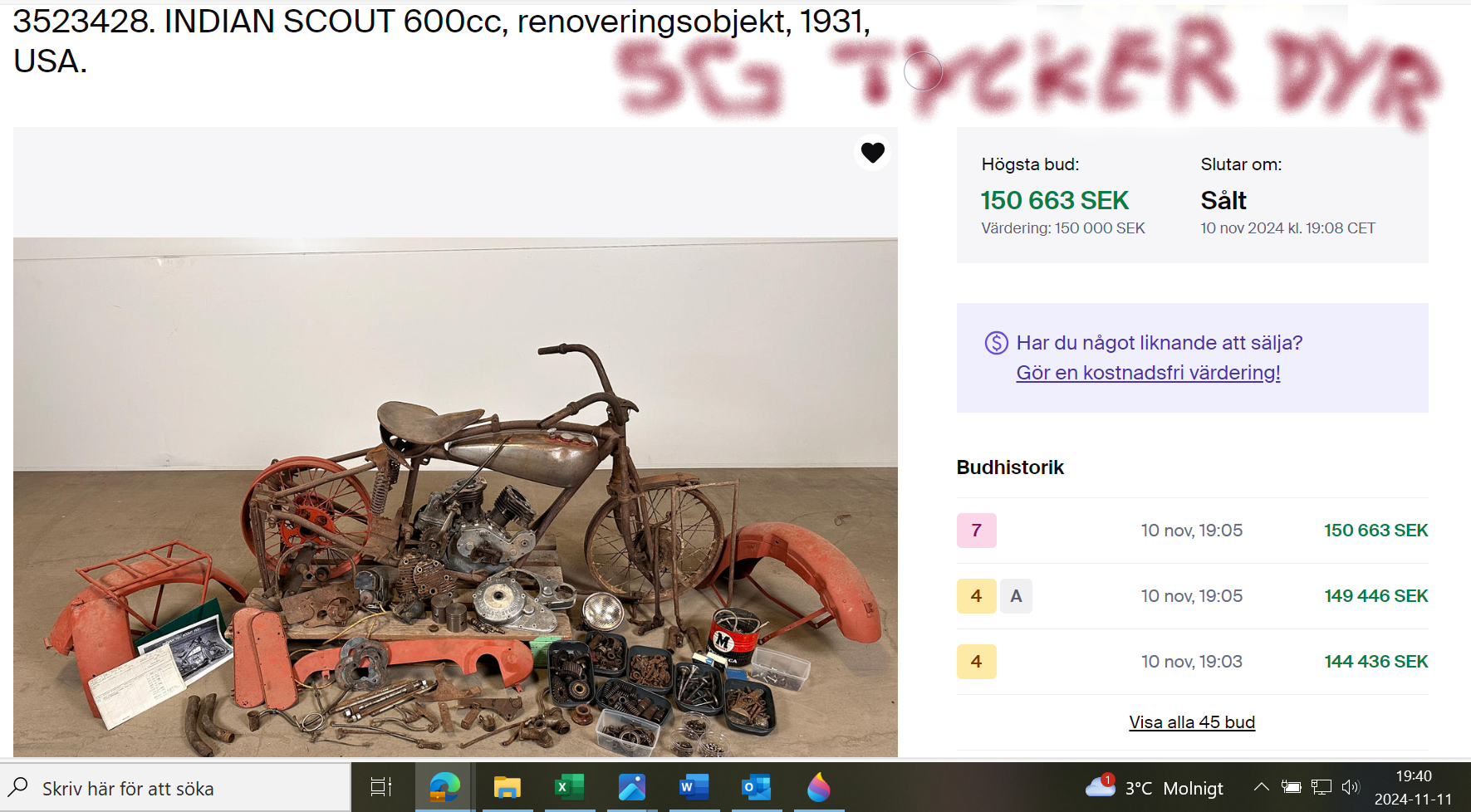 Var en trevlig motorintresserad som hade, tror han nog ville ha mer än aktion gav men det går att hitta billigare. Sen kommer det ta tid och pengar att få ihop, min 1930 NV visst ram och gaffel men Spjällstaket och Rajah delar är ej vanliga så. Kommer ta tag i denna senare.