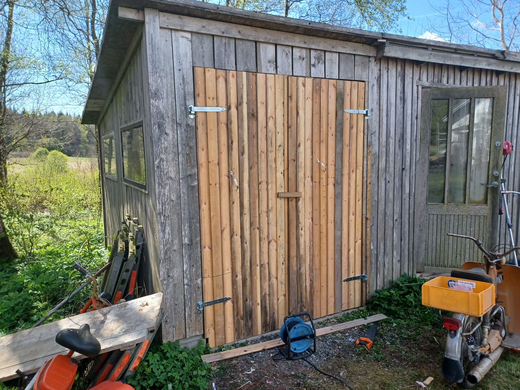 Har han röjt ut samt stommat igen ena gluggen gjort dubbelportar i