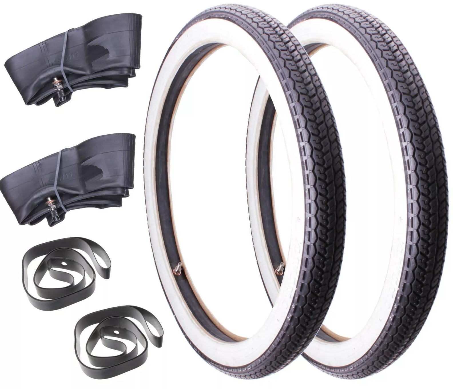och bara en stenflis från punktering. Fick bli några Awina däckkit från Ebay... Inte jättebra koll på kvaliten men vita däcksidor till överkomligt pris.