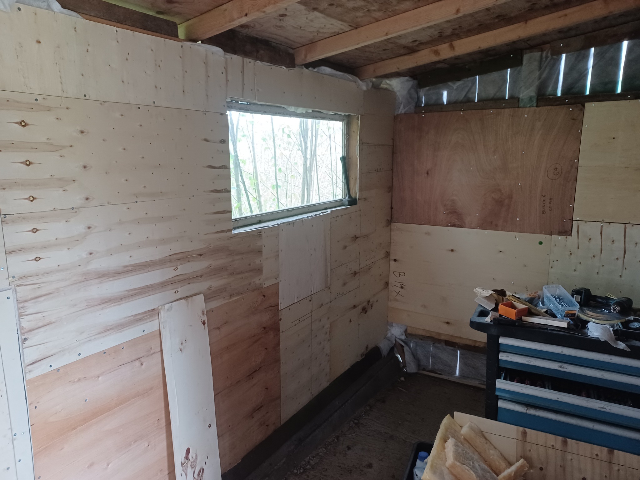 rulla in en verktygsvagn o sätta upp en tavla... Jaja misstänker de blir till köpa lite mer vindpapp o isolering som skivor...