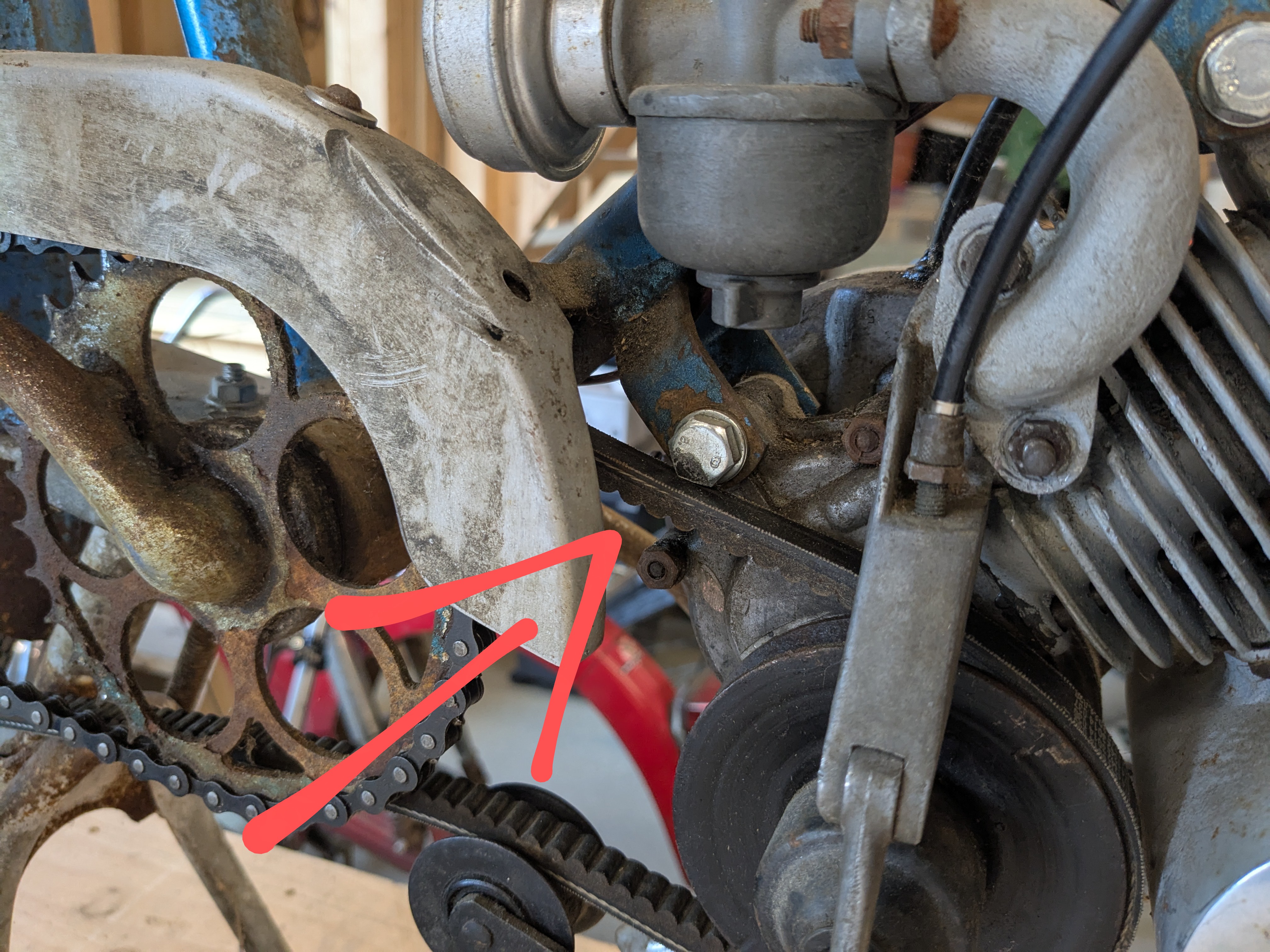För många år sedan fick jag ärva en husqvarna novolette av en nära släkting. Under åren har renoveringen till fungerande skick gått sakta men säkert. Det enda problemet som jag har nu är att drivremmen tar i bulten för motorfästet. Vad är felet? Fel bult? När den är i drift har jag för avsikt att göra en helrenovering av ram, lack, krom mm.