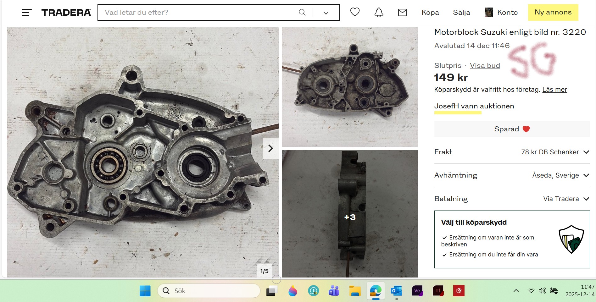 Var en Suzuki K50 motorkåpa jag ej har, la max bud, sen glömde bort för Skidor. Blev inte dyrt och i sista sekund med, f.. och så vidare.