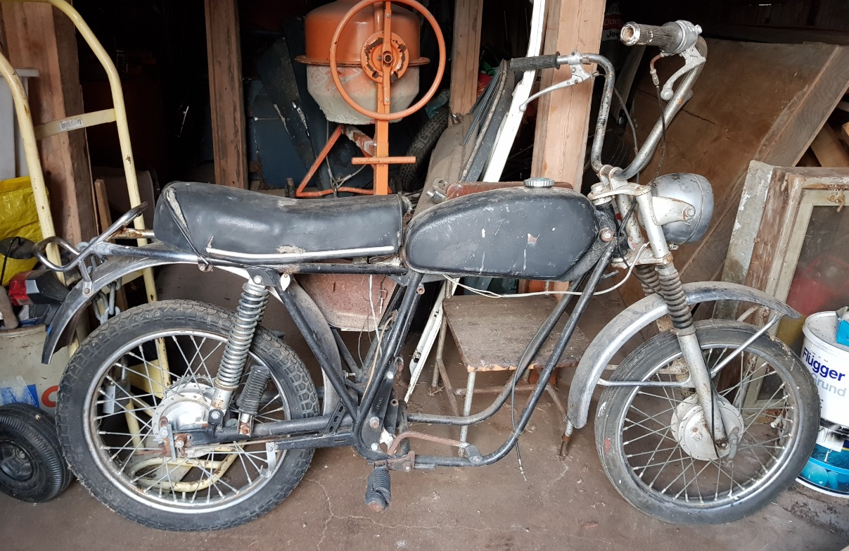 En sån Sachs M50 98cc har jag i en låda i väntan på genomgång, fast den är med kick. Hemköpt på tyska Ebsy för typ 15 år sedan, betalade 800kr + frakt.
