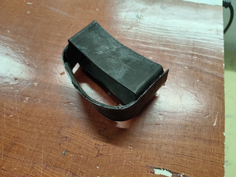 Sen blev det dags för en gummidel som ska sitta runt batteriet. Den var delvis avnött men eftersom vi har gummiduk på jobbet så kände jag att det borde gå att laga.