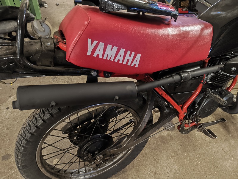 Sen slängdes tanken på plats samt att det blev ett nytt tändstift samt bränsleslag. Sen blev det sadel och framskärm som kom på plats.