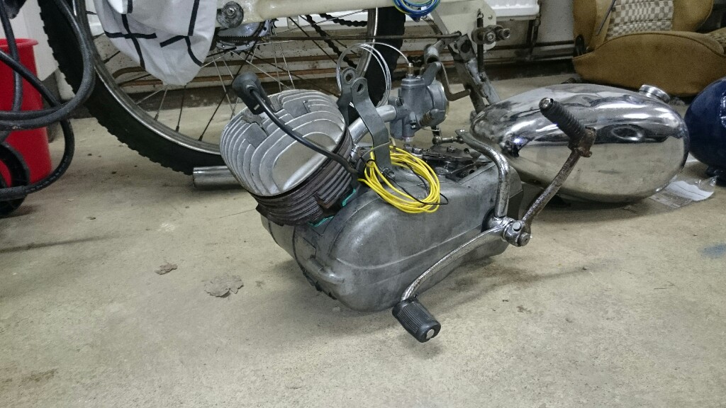 Här har det inte hänt så mycket ser jag! I sanningens namn har det inte hänt så mycket med motorn heller... I våras fick jag i alla fall ihop motorn, bara för att ganska omgående inse att jag hade monterat tandhjulet på kickaxeln fel. Nå, det var bara att svära en (förvånansvärt kort) ramsa och klyva den igen, rotera hjulet så stoppklacken hamnade rätt och skruva ihop allt igen. Efter det tappade jag sugen ett tag, men mäktade i alla fall med att renovera tändplattan. Sedan har inget hänt fram tills igår, då jag plötsligt fick tillbaka lusten att meka moped. Märkligt det där...