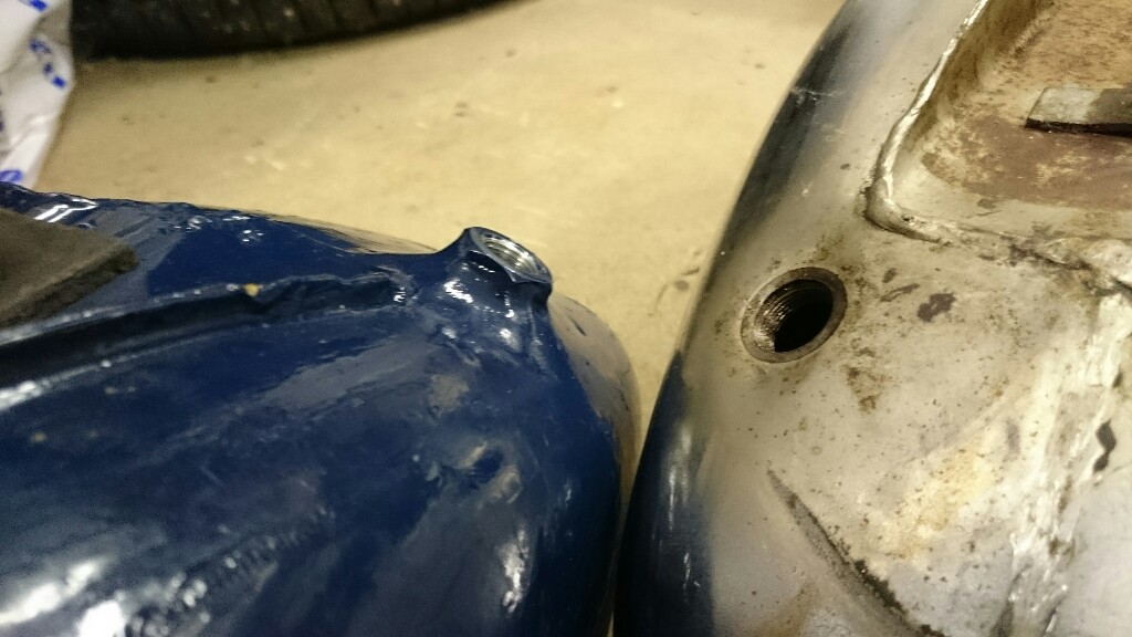 Jag har två tankar till min, ingen av dem ser ut så där! Den ena vet jag dock har modifierats för att kunna använda en vanlig M12X1-kran, men den andra ser ut att sakna någon detalj?