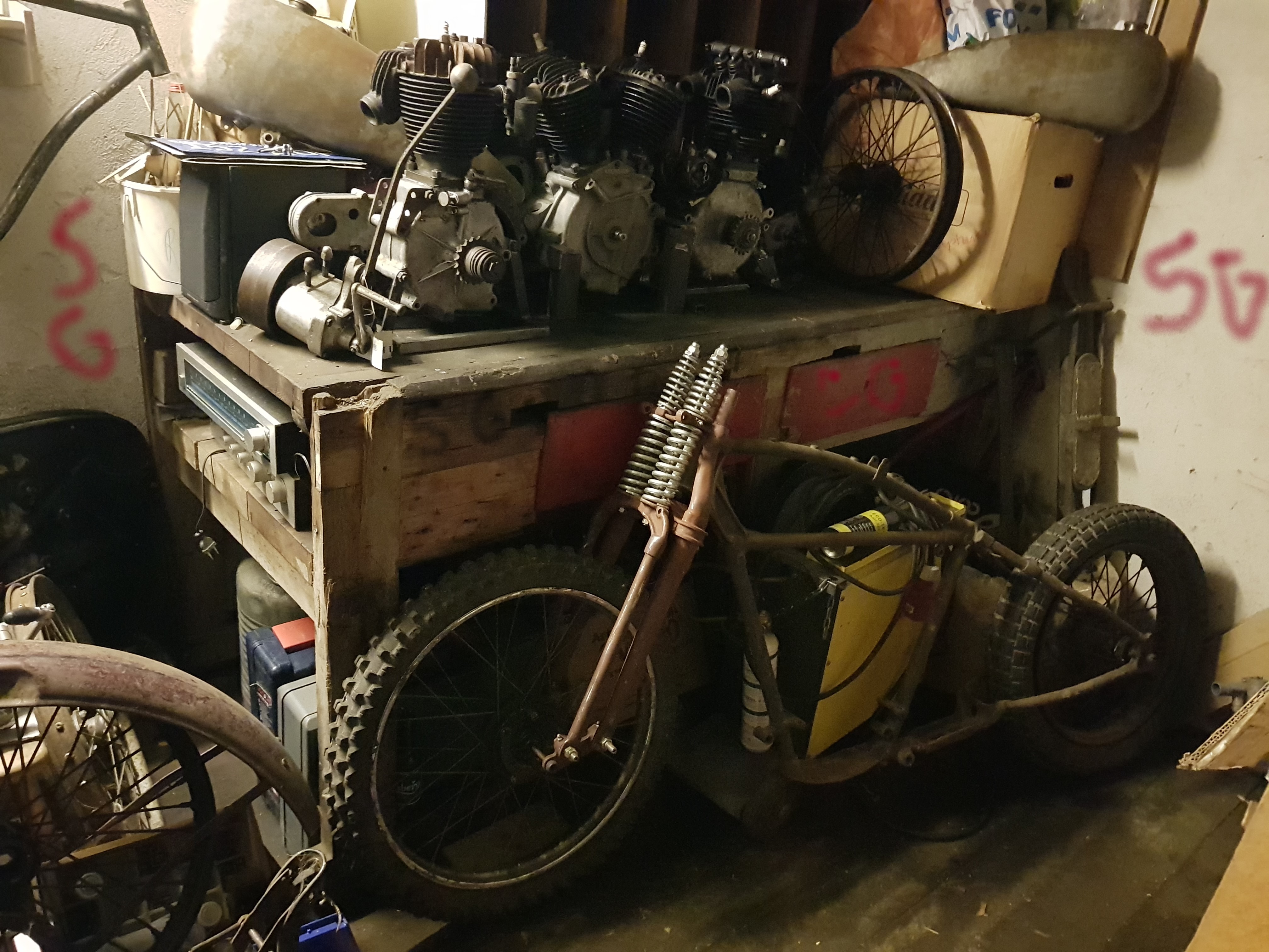 Ett "lätt " bakslag. Vattenskador. Natten mellan 230901 och 230902 fylldes källaren med vatten till en halvmeter, allt i källaren alla hojar(1926 hd och Panhead välta) alla svindyra 10-30tals dränkta, min 1946 Knucklehead 100% original i delar, en 500cc Jap osv.