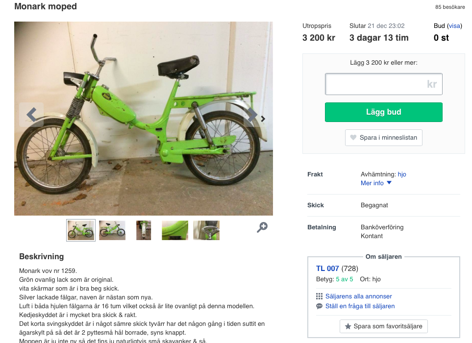 Coola/fula/billiga/dyra mopeder på BLOCKET, TRADERA och EBAY