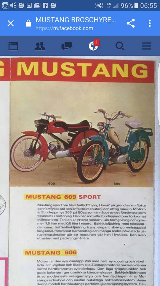Raketsport skrev:Den där är den senare varianten på Mustang Flying Horse. Udda skapelse, så om man gillar ovanliga mopeder så ska man nog slå till. Ni kanske inte får se en liknande igen.