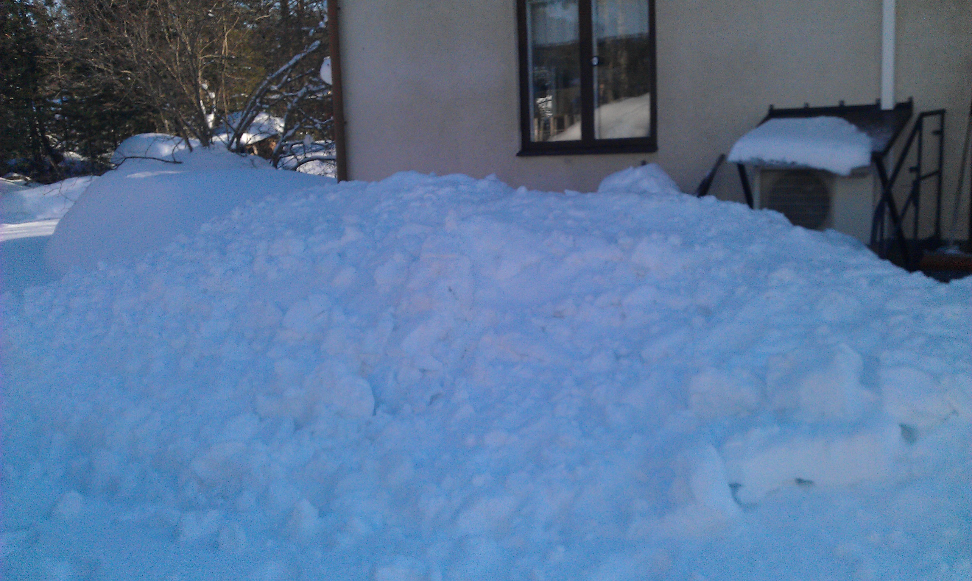 HSE skrev:Blötsnö är tungt, för en del år sedan rasade mitt veranda tak när jag satt och fikade innan jag skulle ut och skotta det Mittbalken knäcktes av tyngden, lika bra att jag inte hann ut och börja jobba på det, hade jag kommit i vägen för denna vikt kunde det slutat illa...